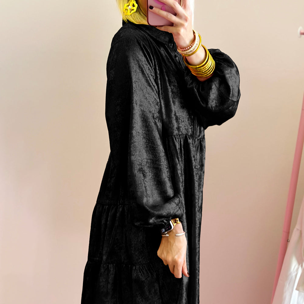- The mini shirt dress is a glamorous choice for any special occasion.
