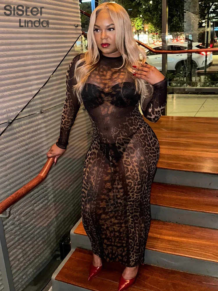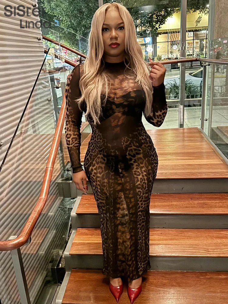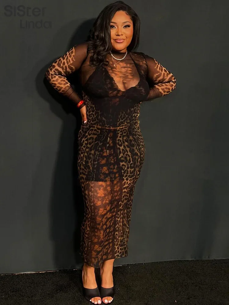 • Autumn Release Junior Ankle-Length Sexy High Street Dress K24D56731Girl Knit Leopard Color Slim Fit Long Sleeve Robe