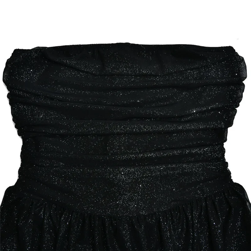 • Elegant Strapless Sexy Mini Dress Women Fashion Black Off-Shoulder Backless Pleated Sequins Sparkle Club Party Dress