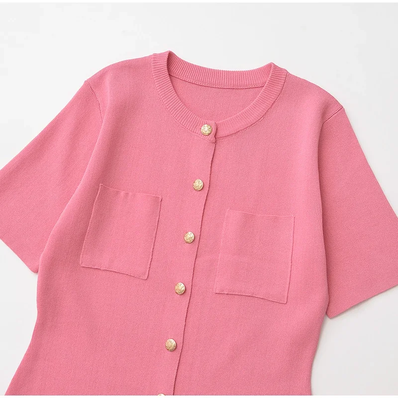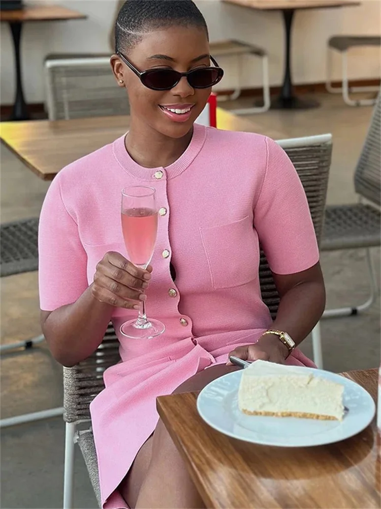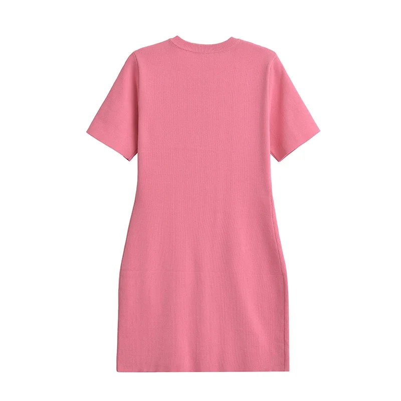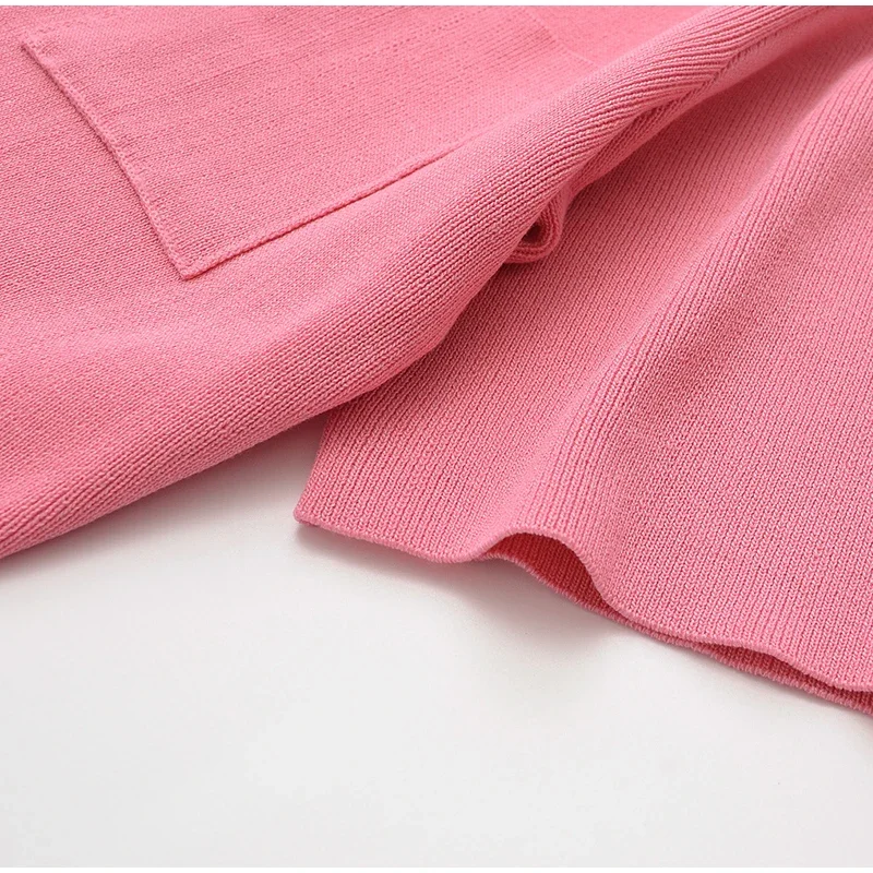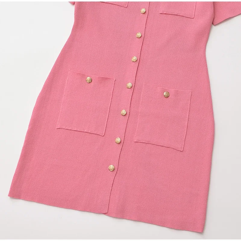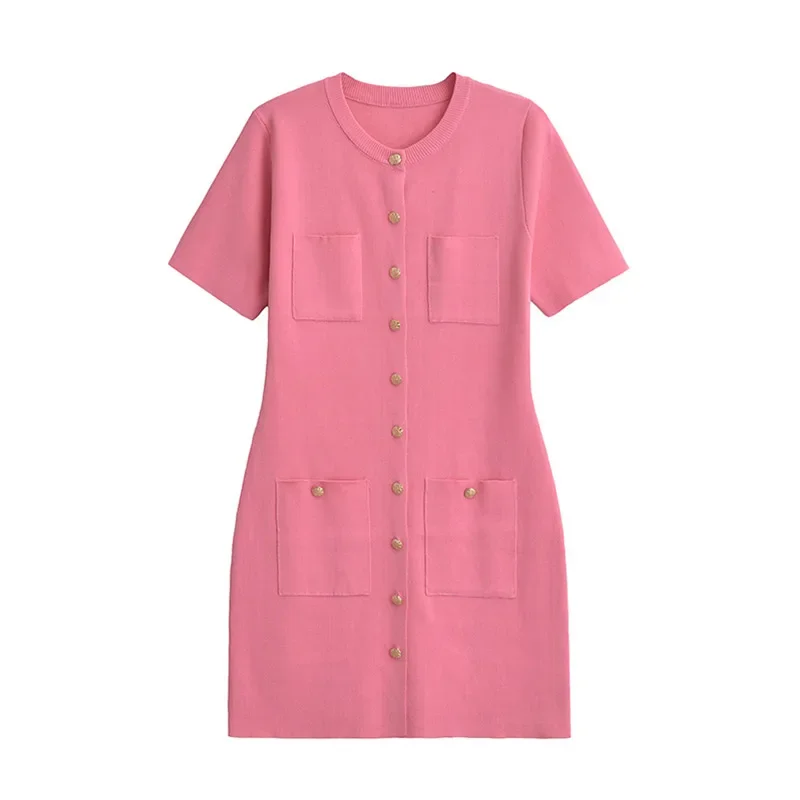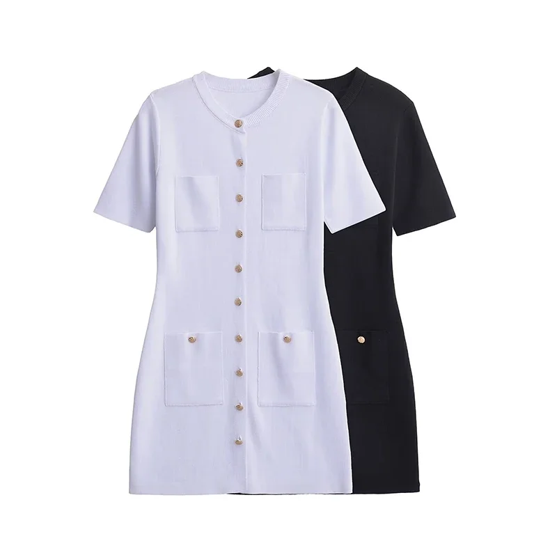Pocket Knit Female Mini Dress Autumn 2024 Ribbed High Waist Fashion Patchwork Elegant Party Dress Knitwear Cardigan Dress