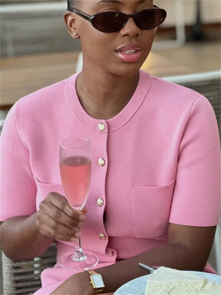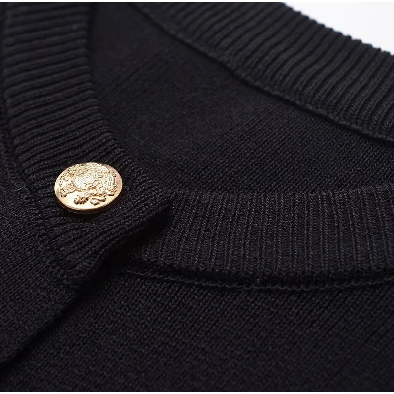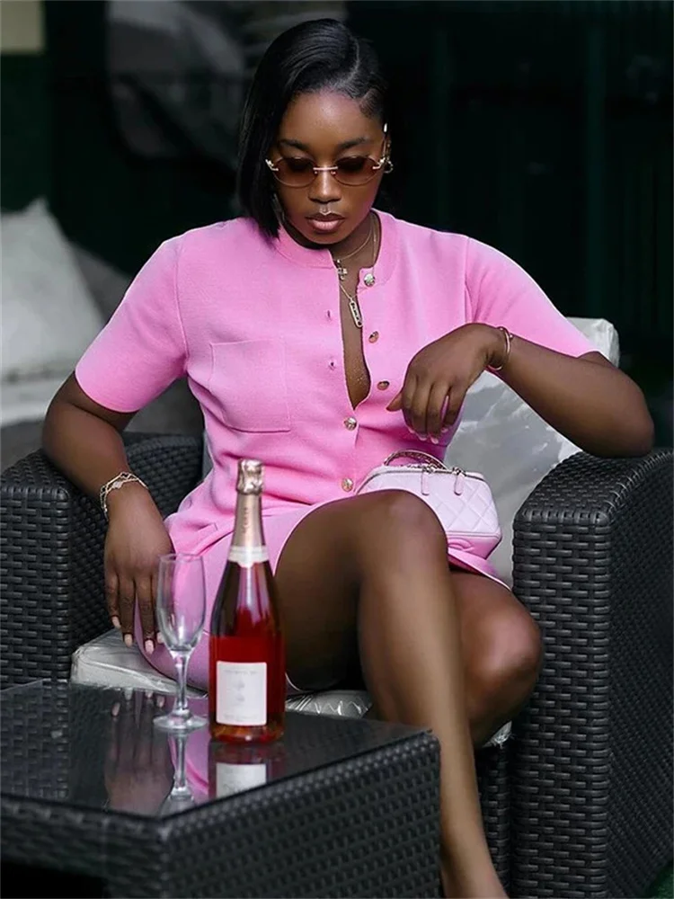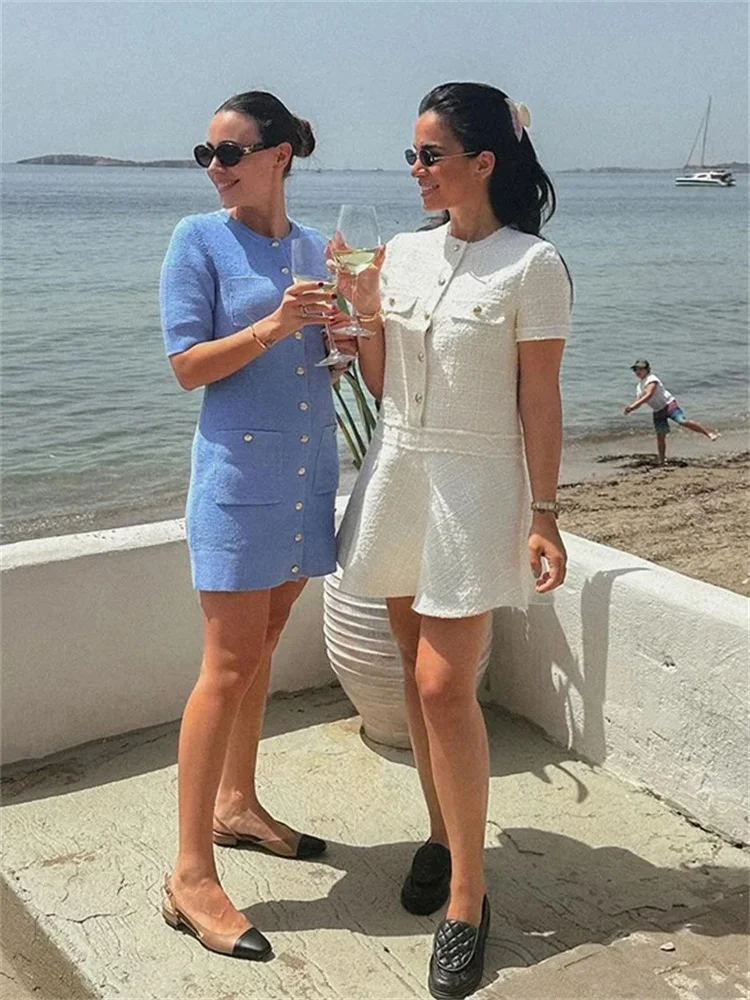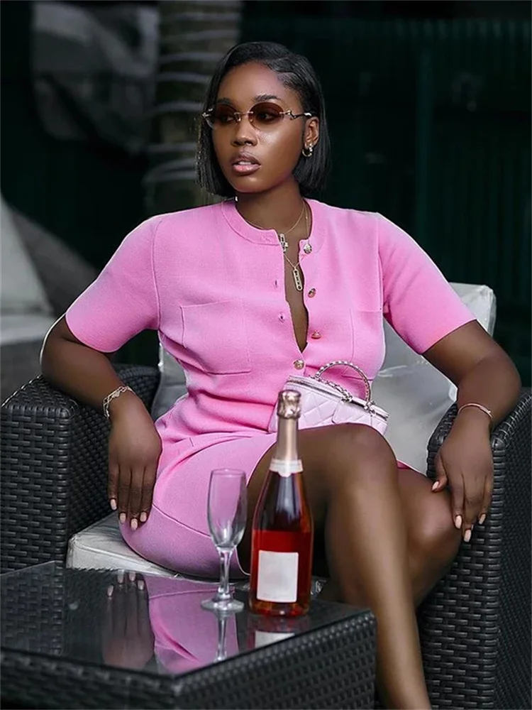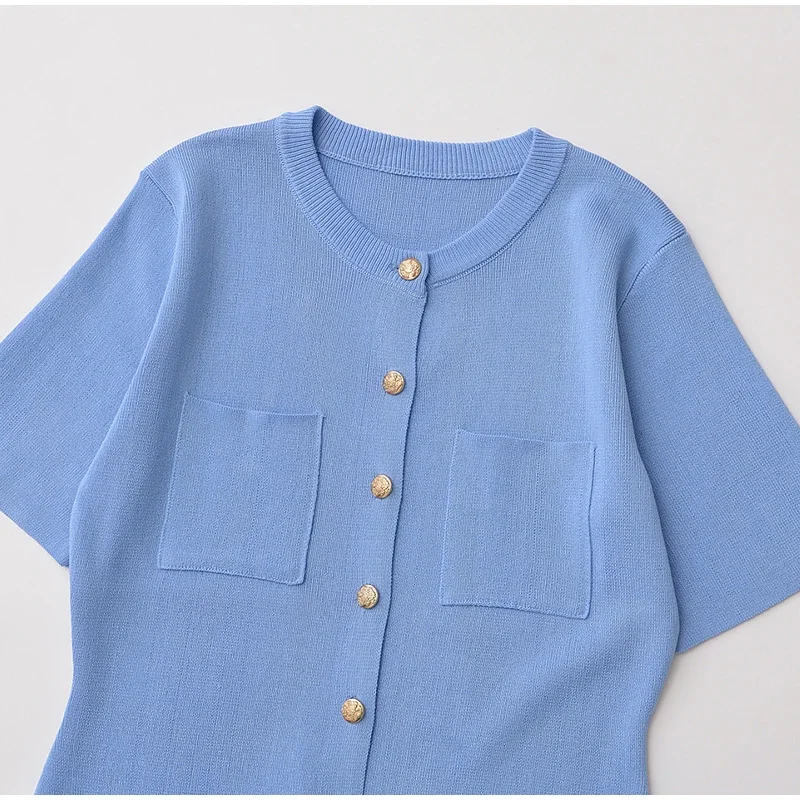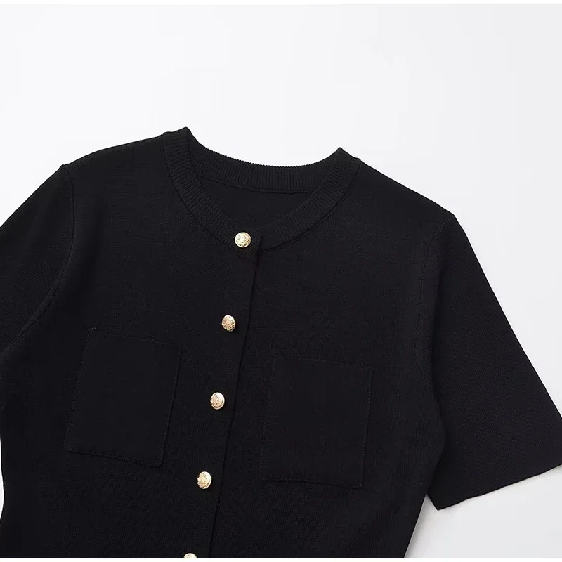 Pocket Knit Female Mini Dress Autumn 2024 Ribbed High Waist Fashion Patchwork Elegant Party Dress Knitwear Cardigan Dress