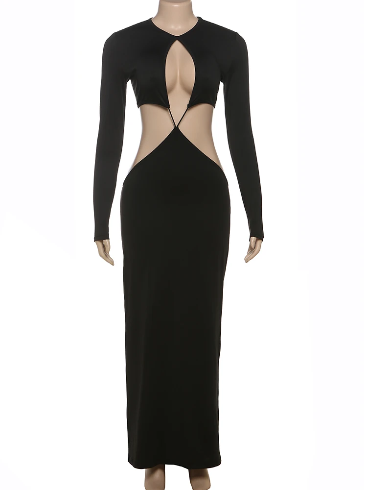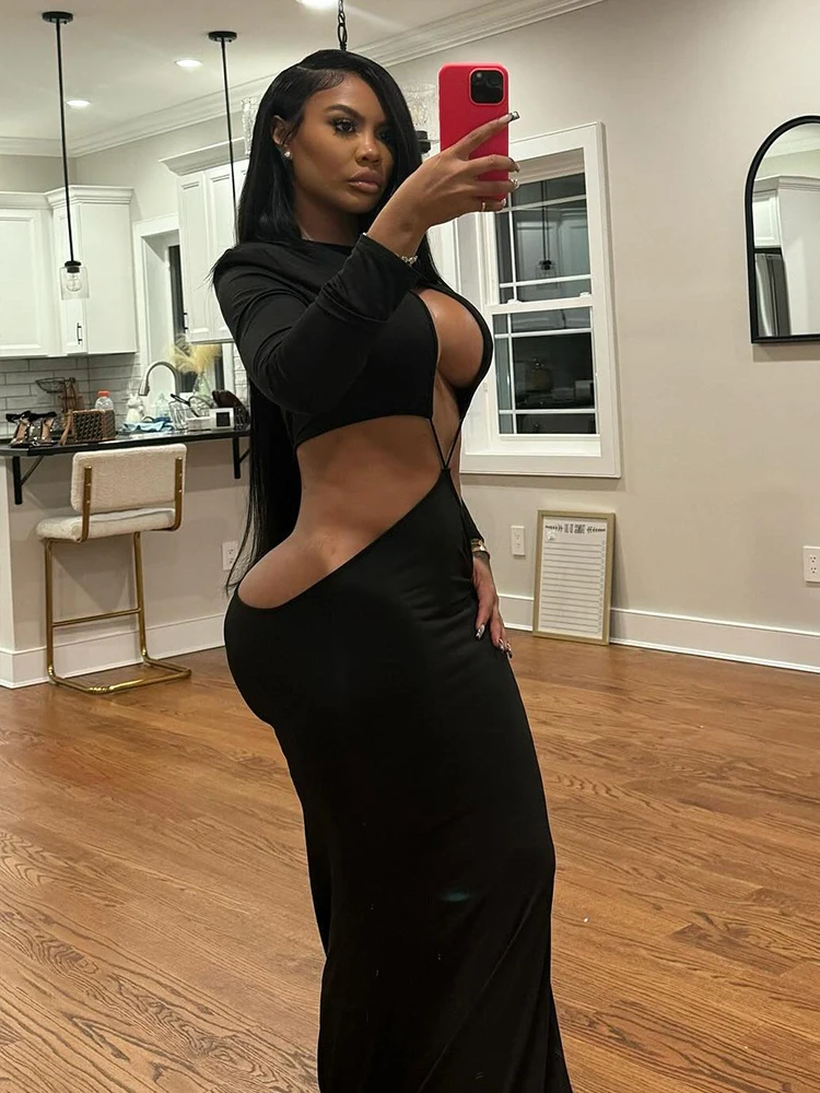 Sexy Coquette Dress Women Hollow Irregular Waistless Backless Full Sleeve Stretch Skinny Clubwear Hipster Vestidos