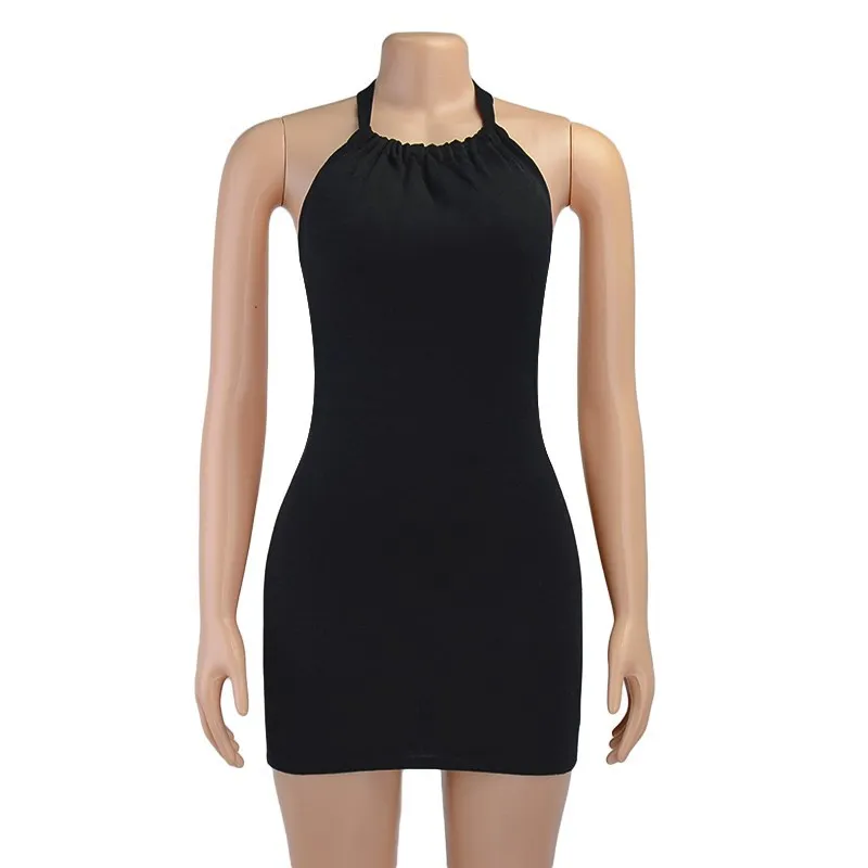 • Sexy Spaghetti Strap Halter Neck Backless Bodycon Dress Women Solid Color Sleeveless Mini Dress Elegant Club Party Vestidos