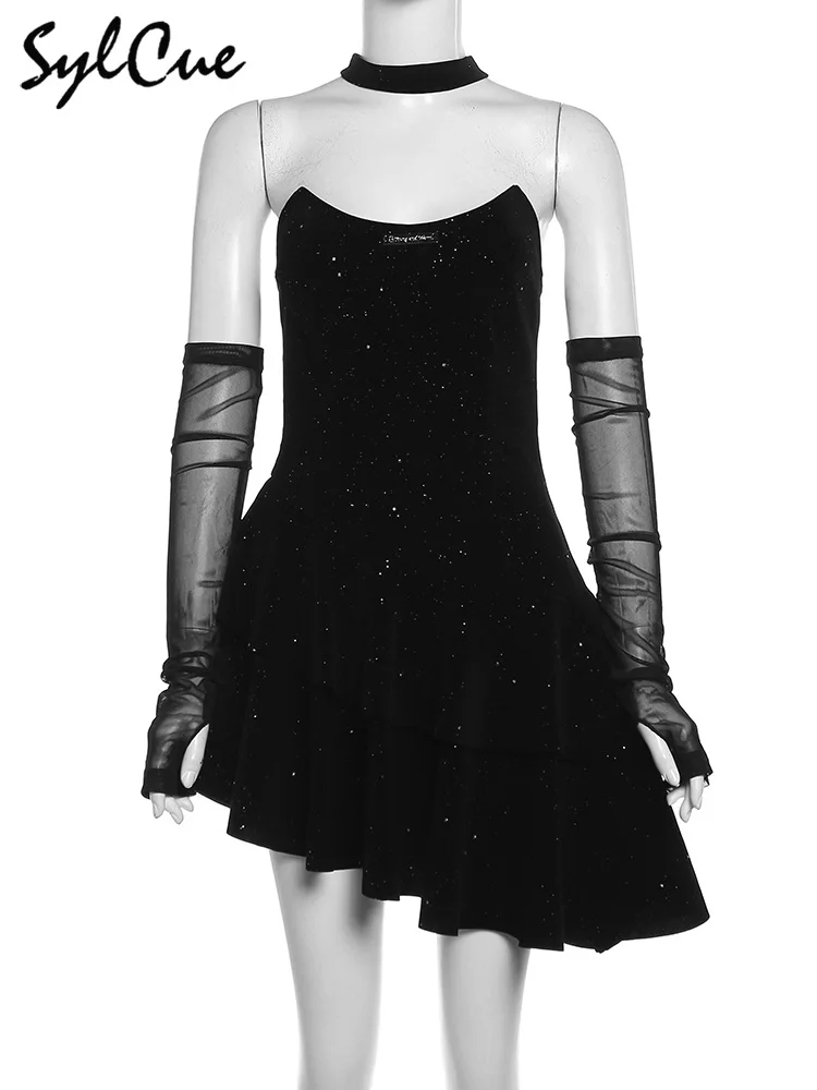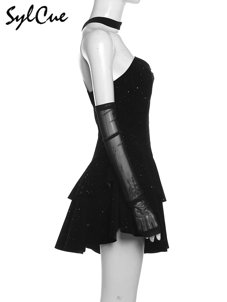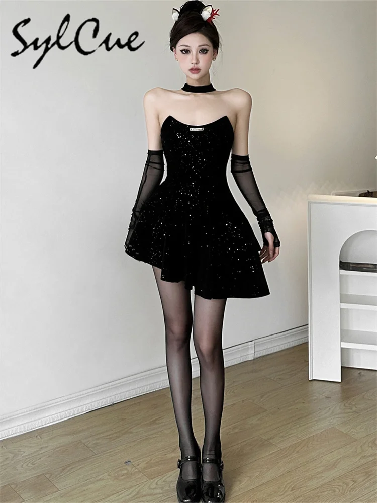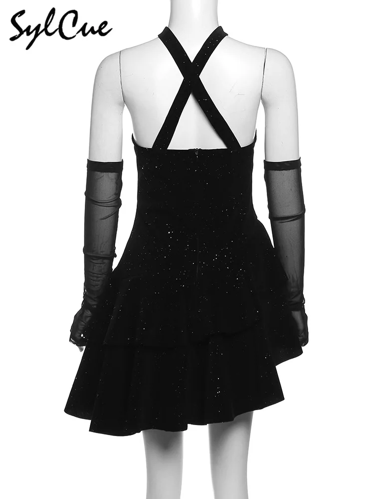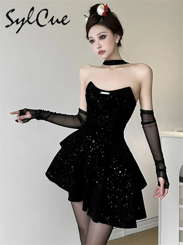 • Winter Sister Party Dignified Intellectual Elegant Mature Beautiful Gentle Sweet Women'S Black Irregular Halter Dress