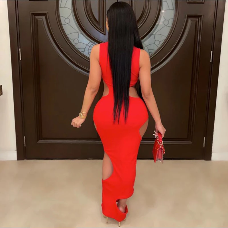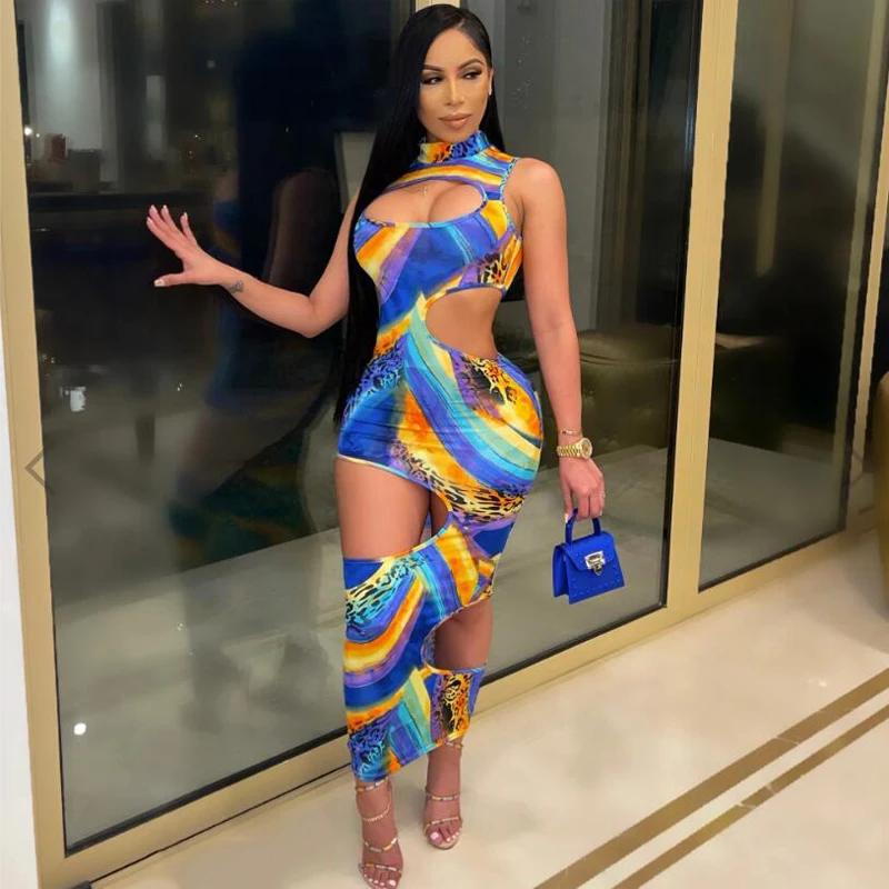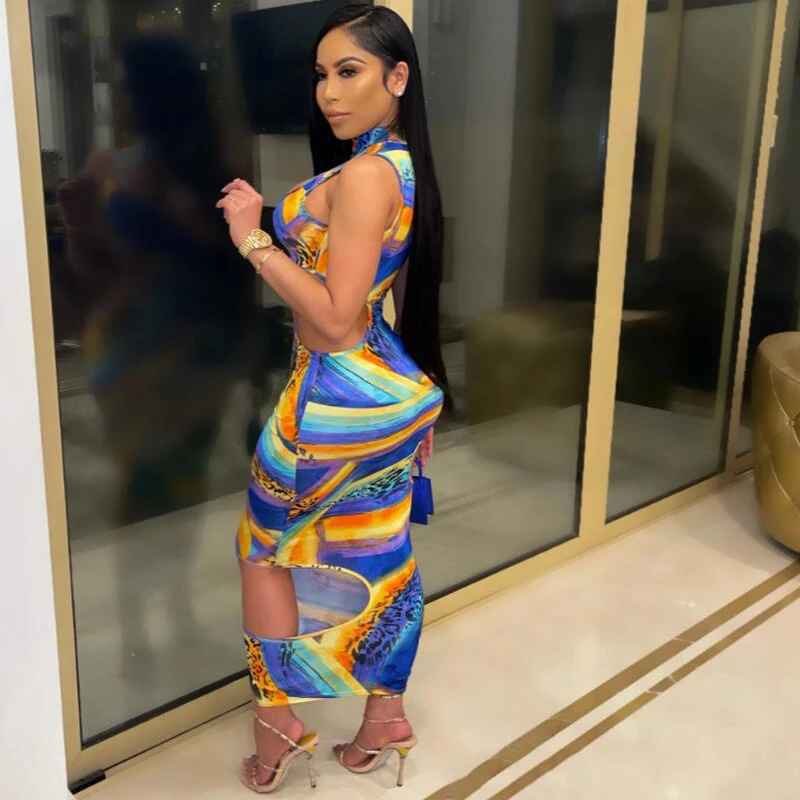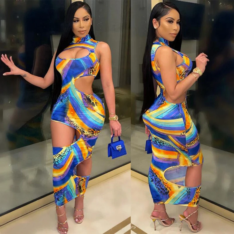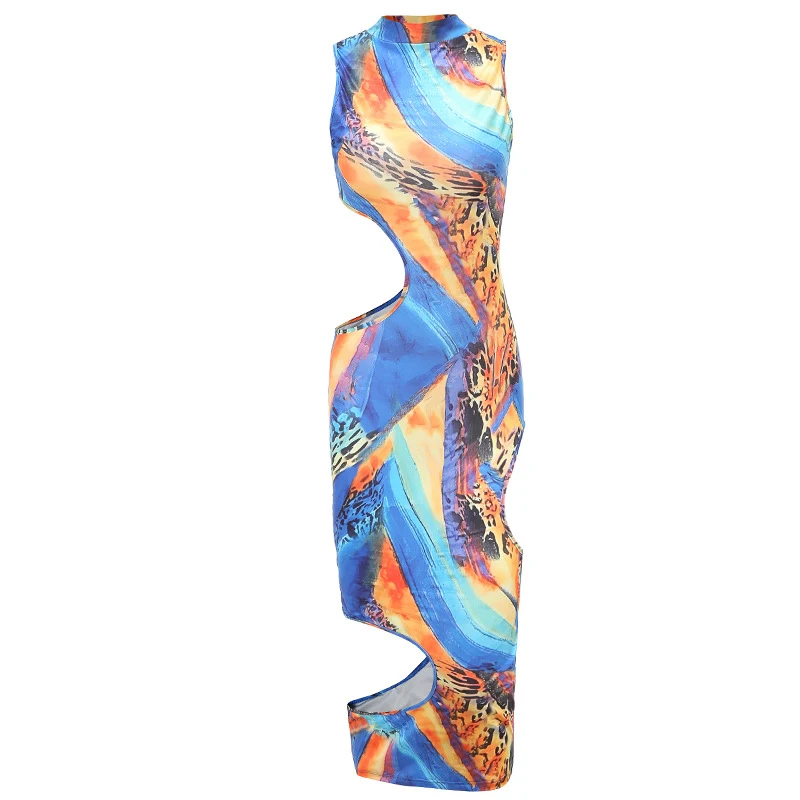 Women'S Sleeveless Hollow Cover Buttock Sheath Long Dress 2024 Summer New Milk Silk Print Flower Dress