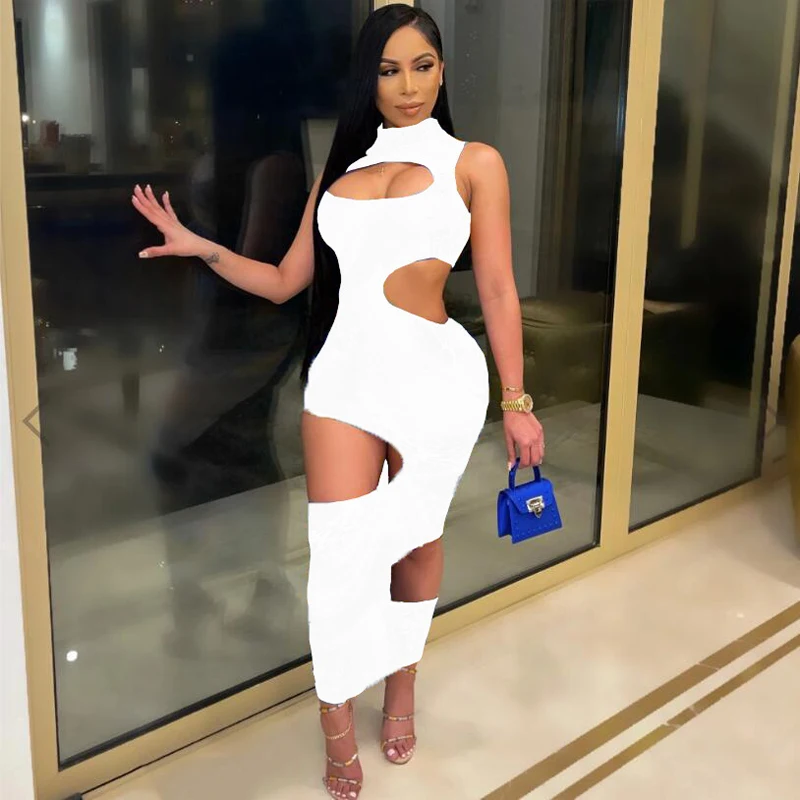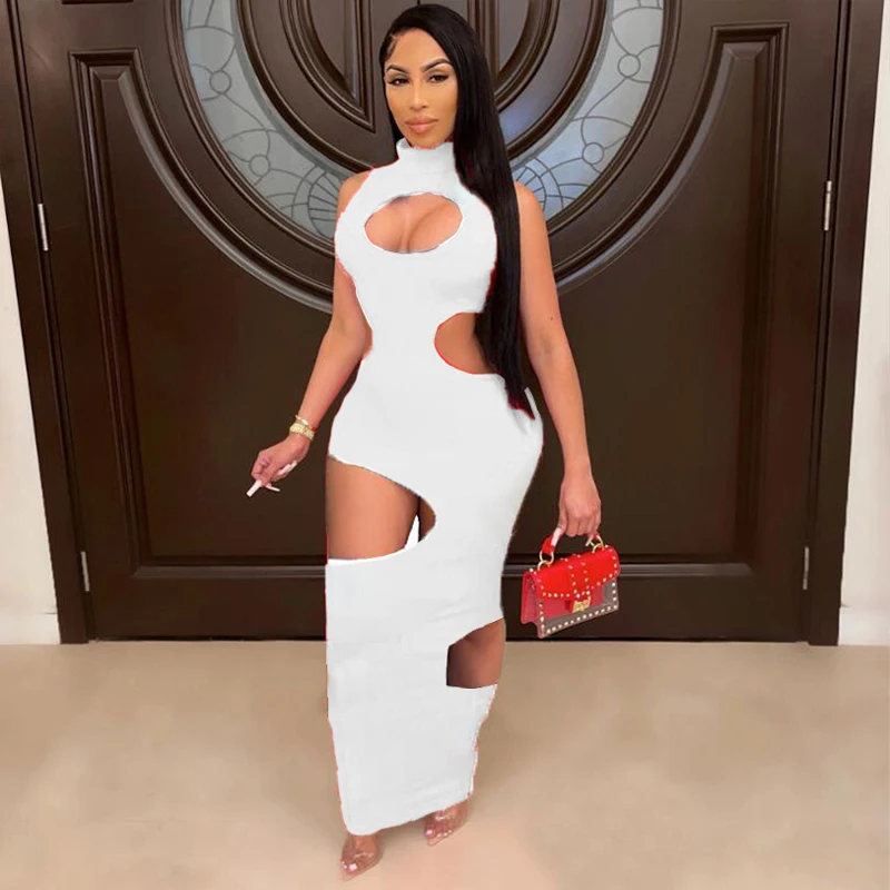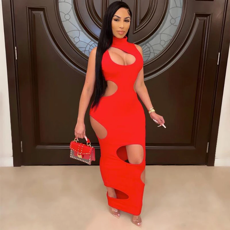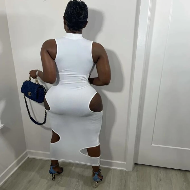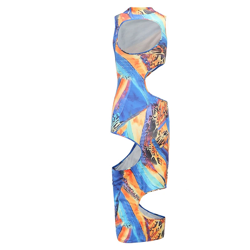 Women'S Sleeveless Hollow Cover Buttock Sheath Long Dress 2024 Summer New Milk Silk Print Flower Dress