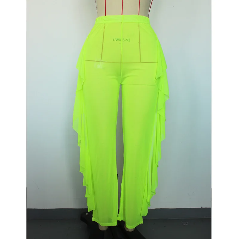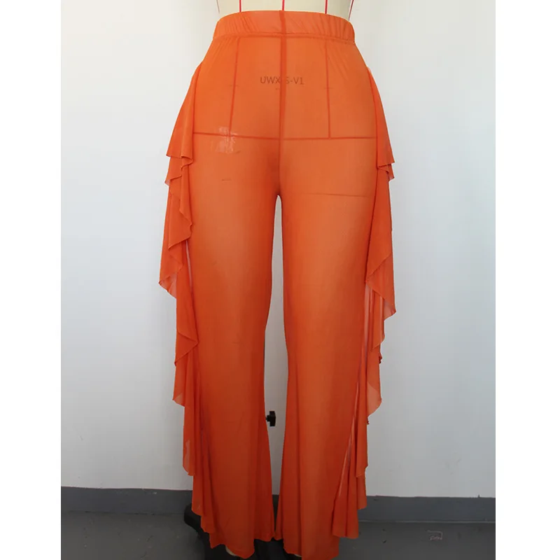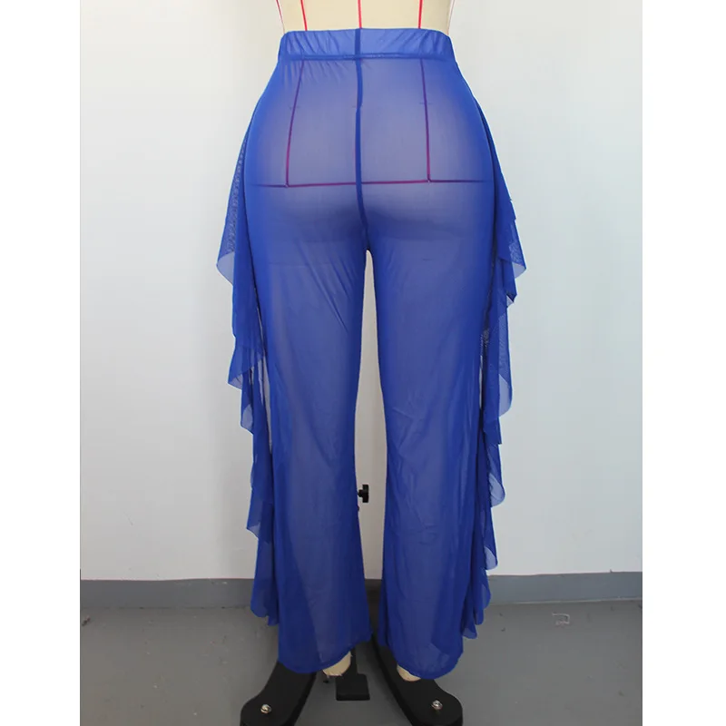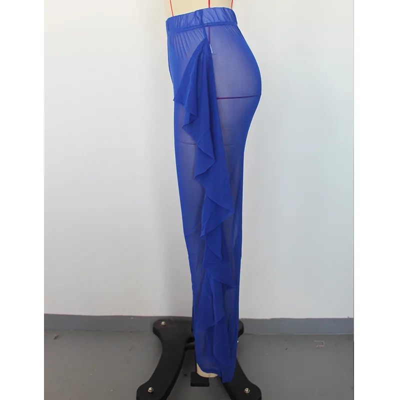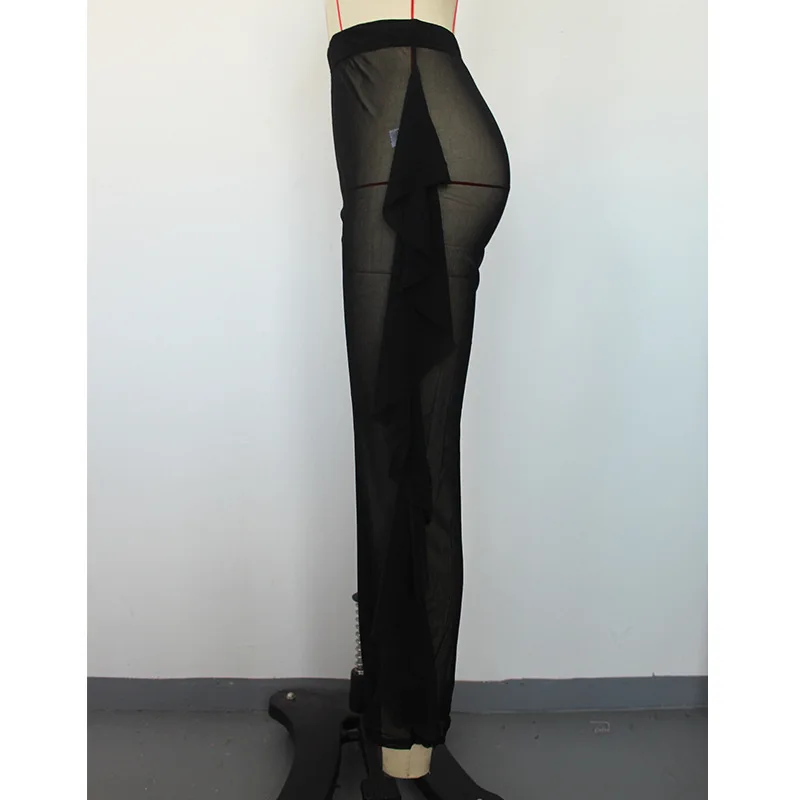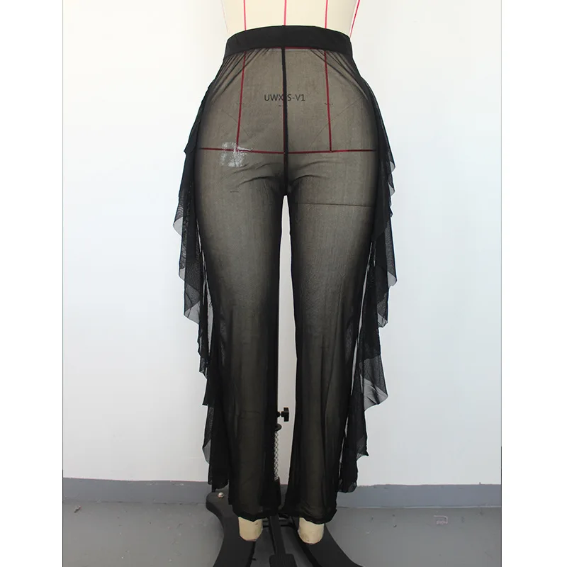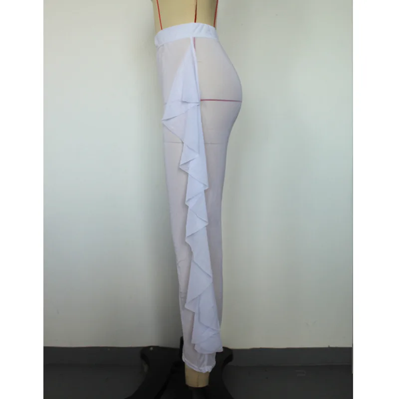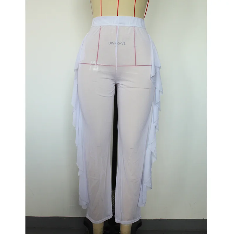 Ruffles Women Mesh Pants Sexy See through Beach Cover Ups 2023 Summer Holiday Beach Bathing Clothing High Waist Skinny Trousers