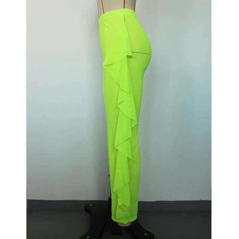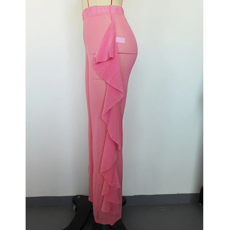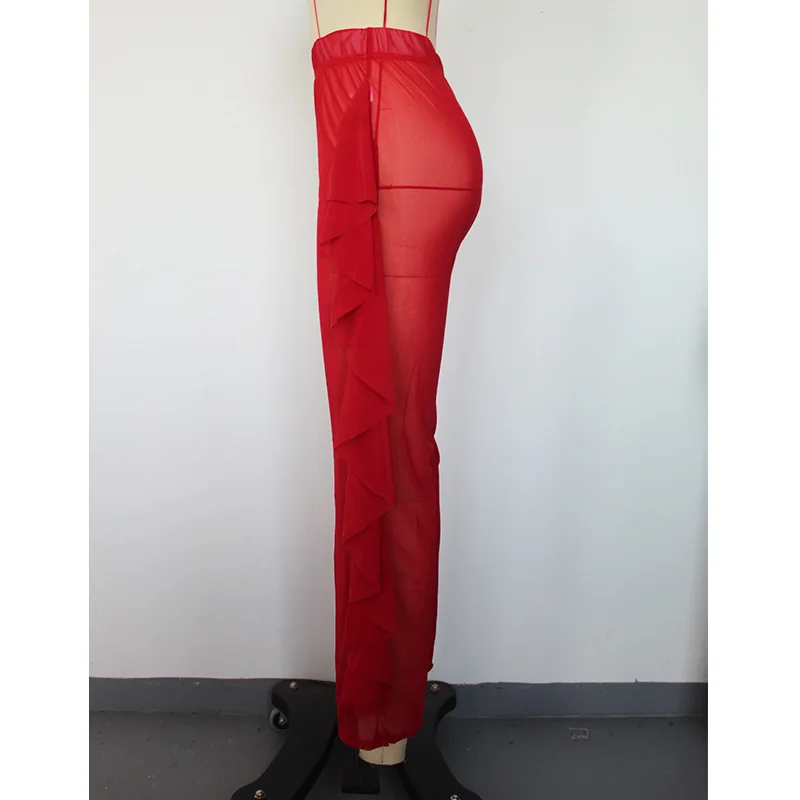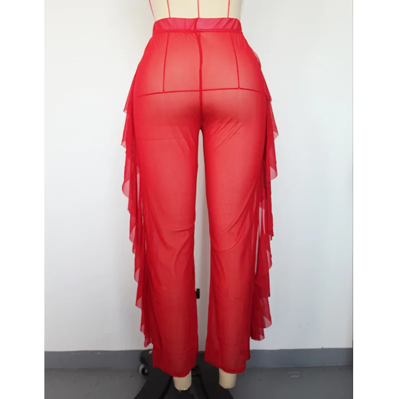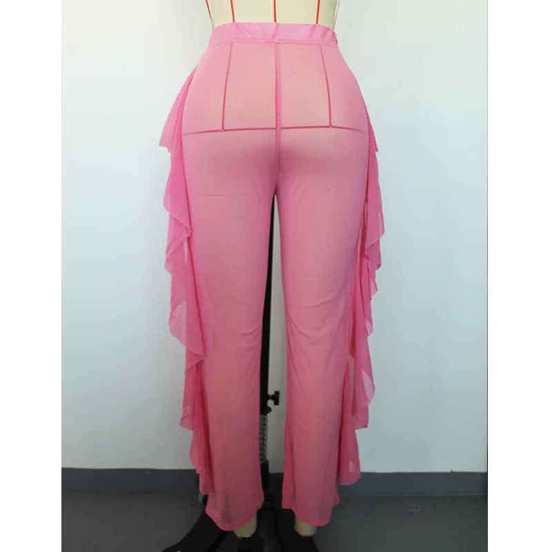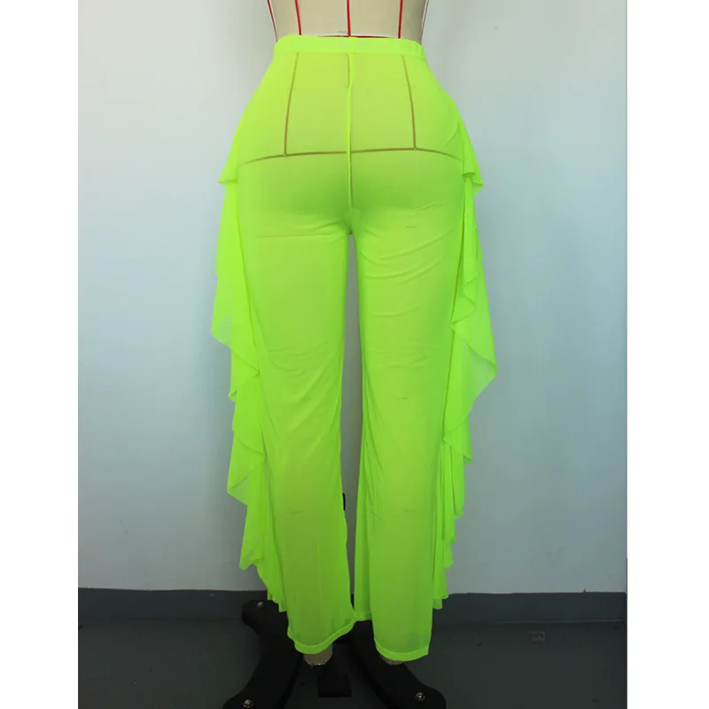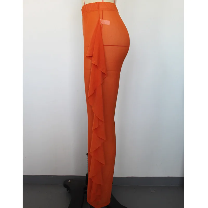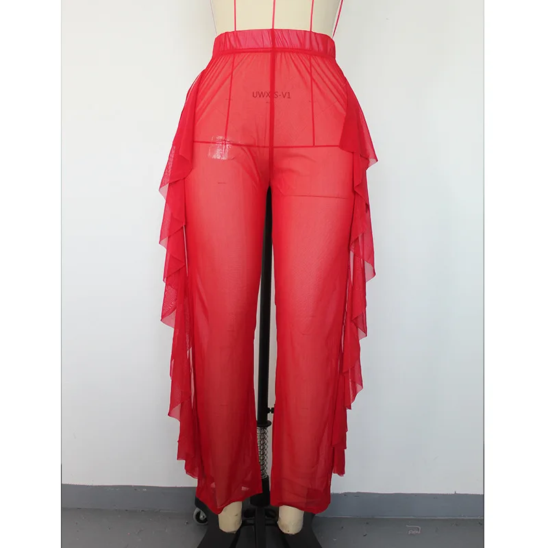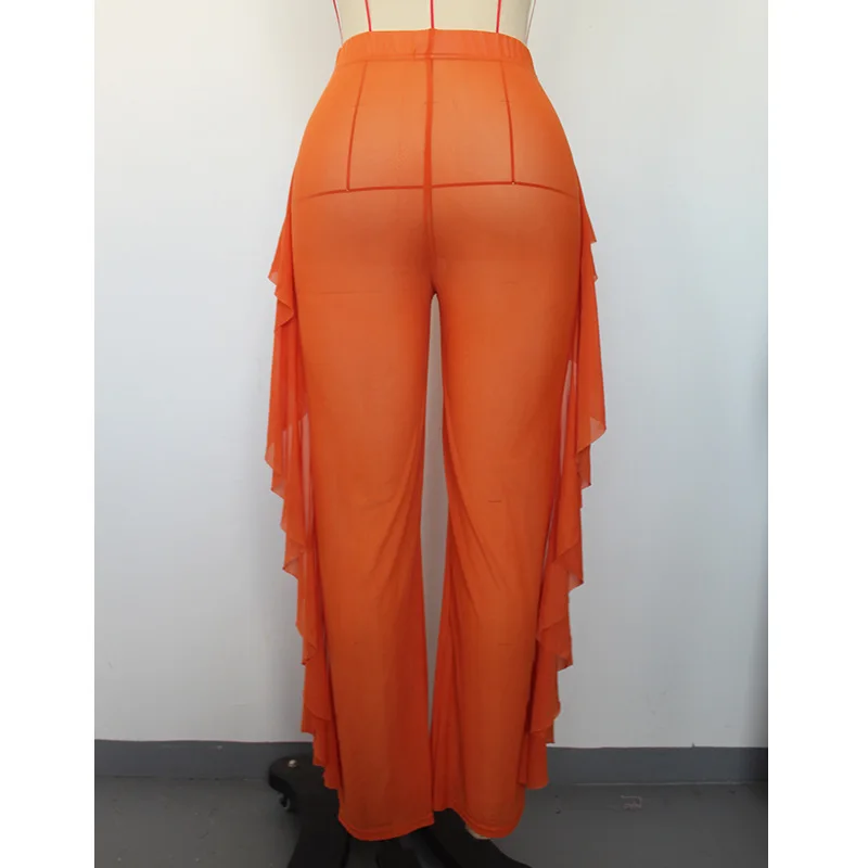 Ruffles Women Mesh Pants Sexy See through Beach Cover Ups 2023 Summer Holiday Beach Bathing Clothing High Waist Skinny Trousers