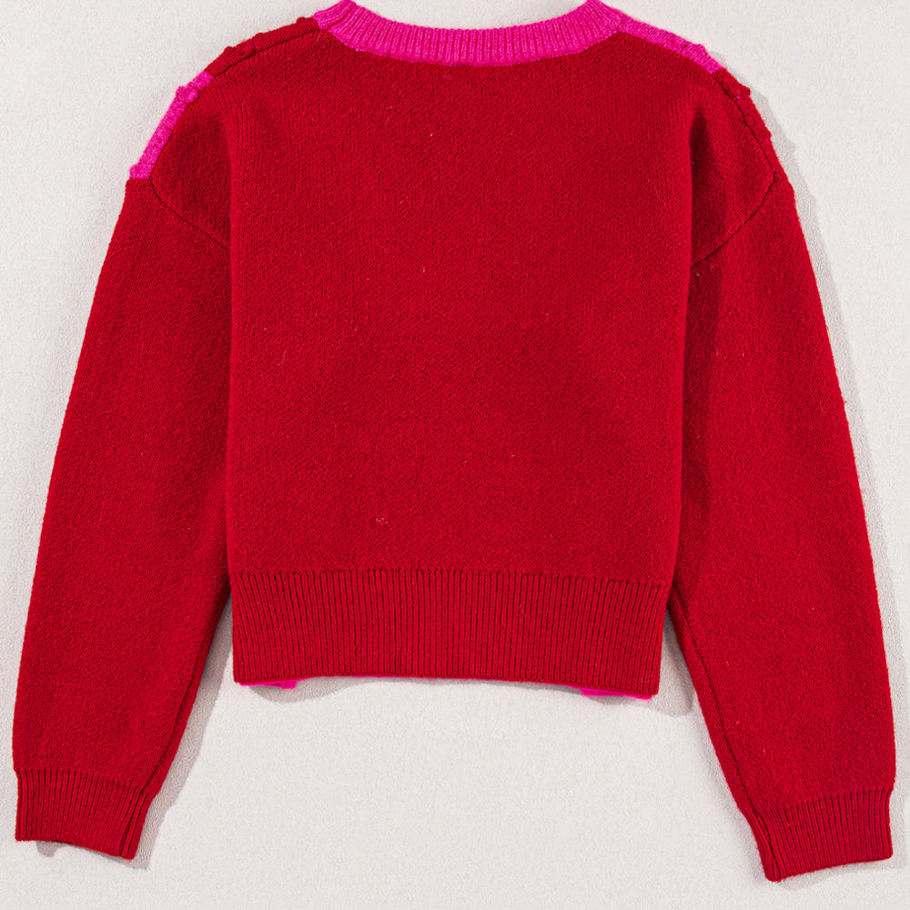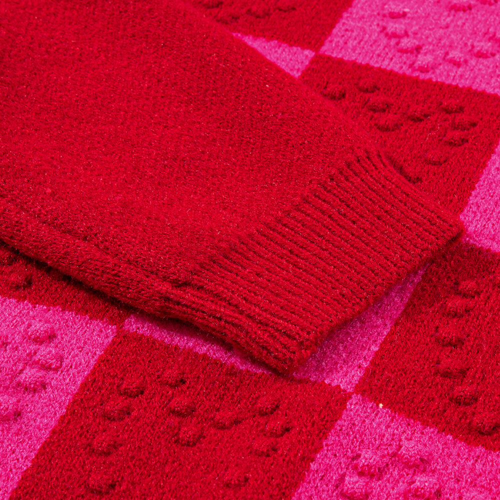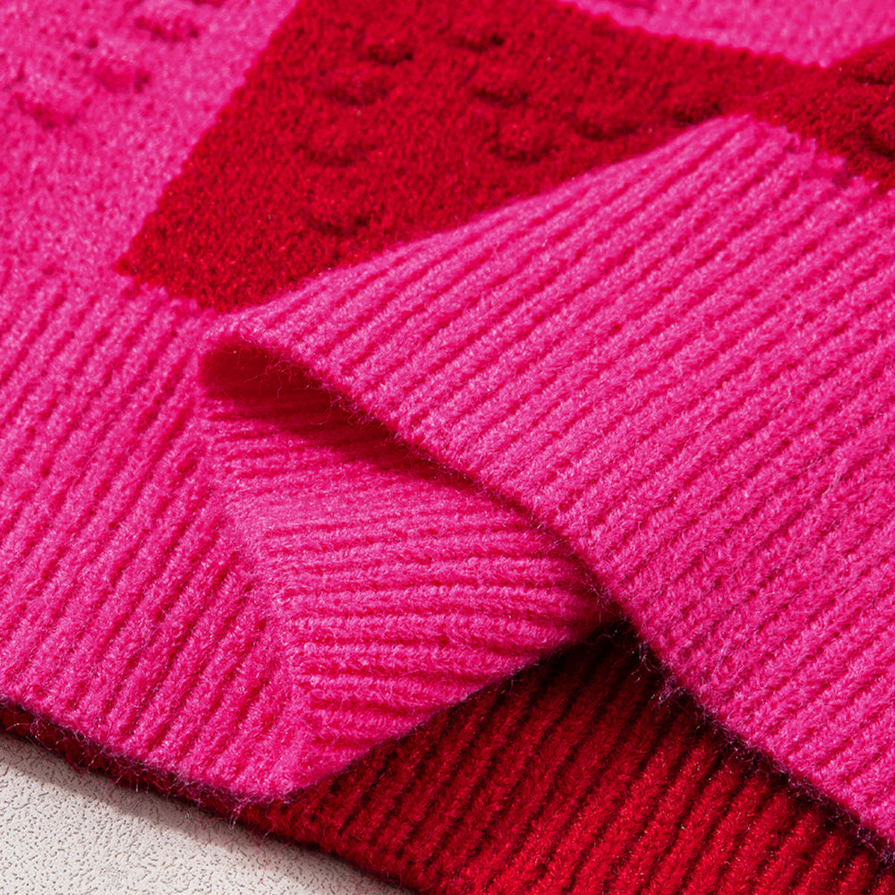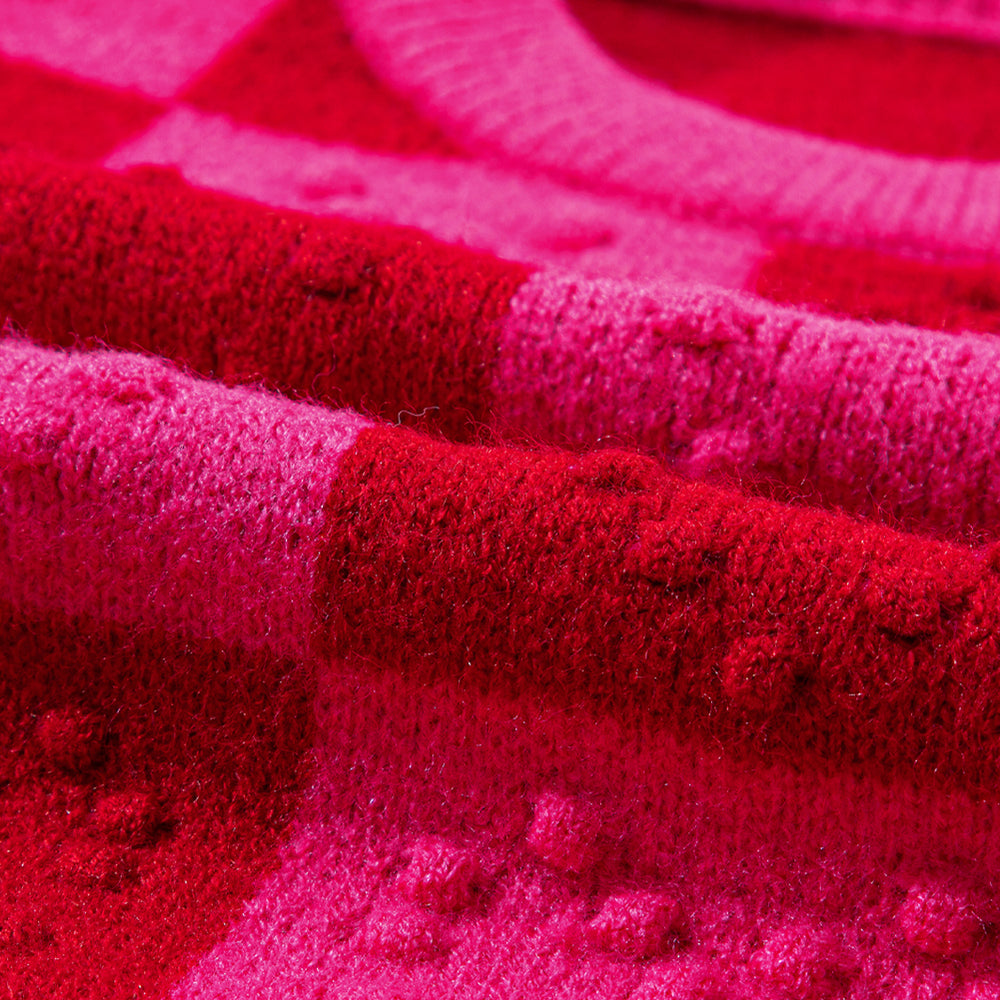 • Multicolor Checkered Pattern Heart Detail Textured Sweater