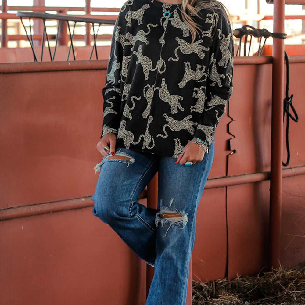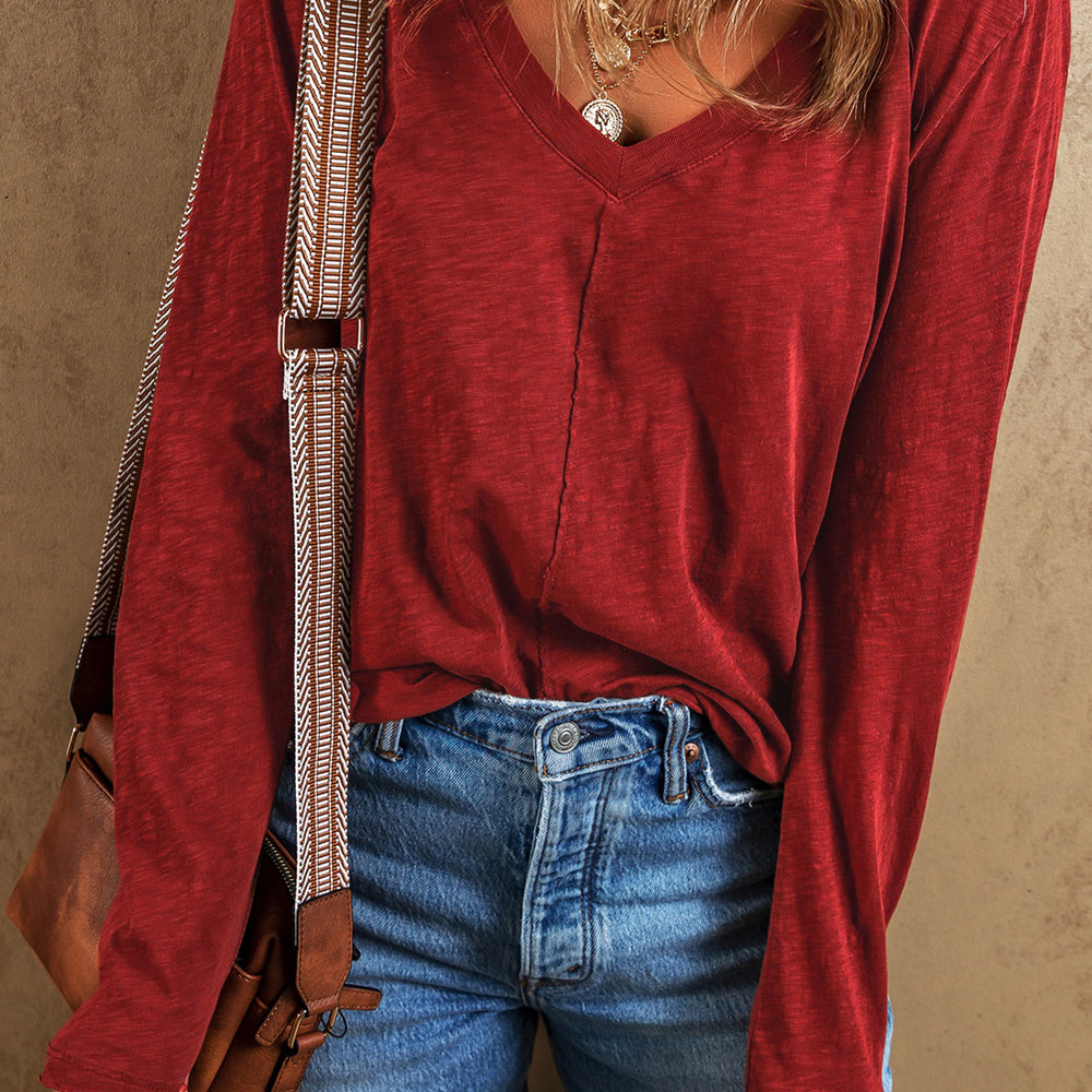 Red Sequined Heart Printed Sleeves Valentine Fashion Top