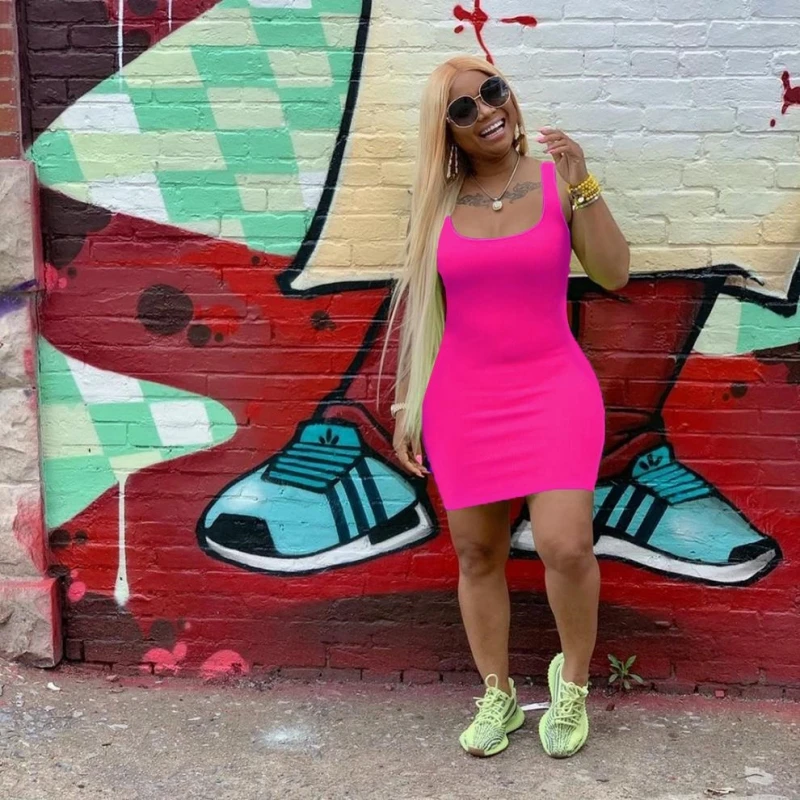 • Summer Sleeveless Spaghetti Strap Mini Solid Dress Women Sexy Slim Camisole Wrap Hip Backless Dresses New Fashion Beach Vestidos