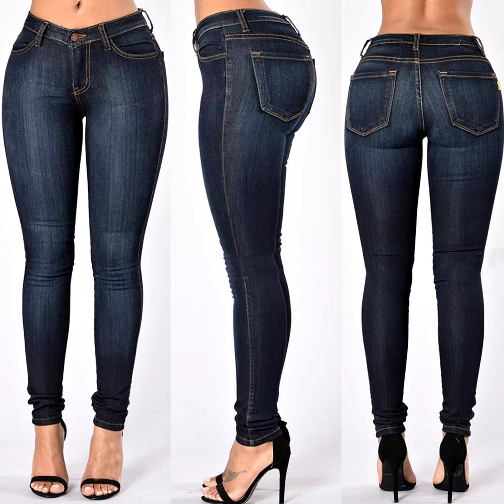 Jeans Slim Fit High Waist Denim Pull-on Skinny Jeans for Daily LifeDescription:What this jeans can offer you is that it can show your slender legs.Solid color jeans can be eas...
