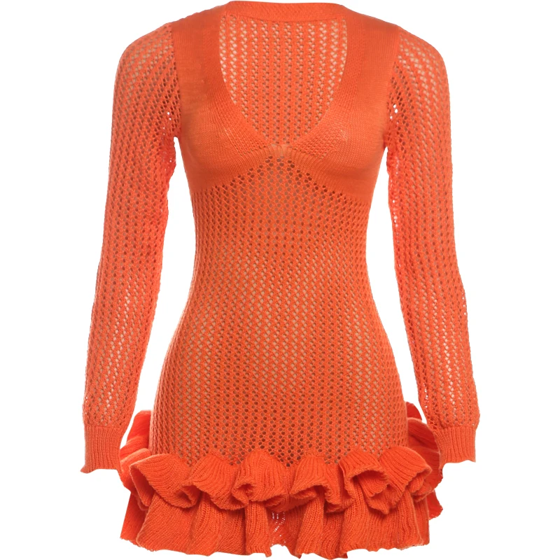 • Crochet Women Dress See through Sexy Tierred Hem 2024 Fall Trend Hipster Deep V-Neck Stretch Y2K Chic Mini Bodycon