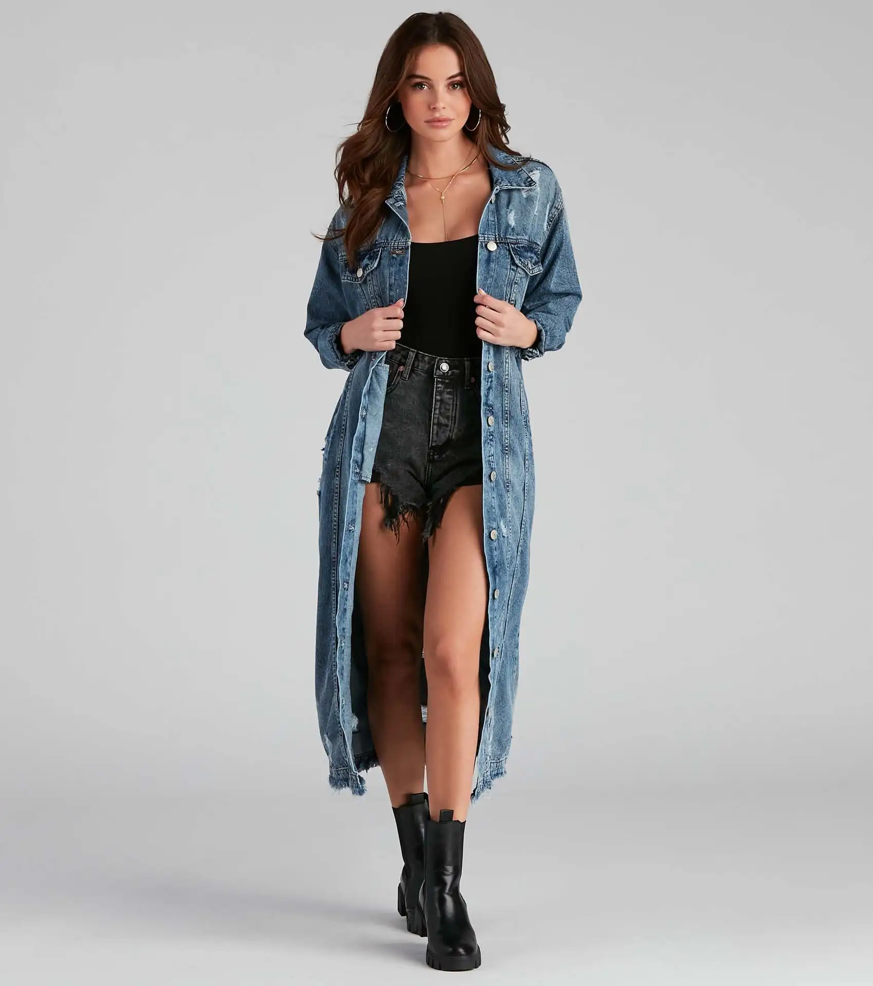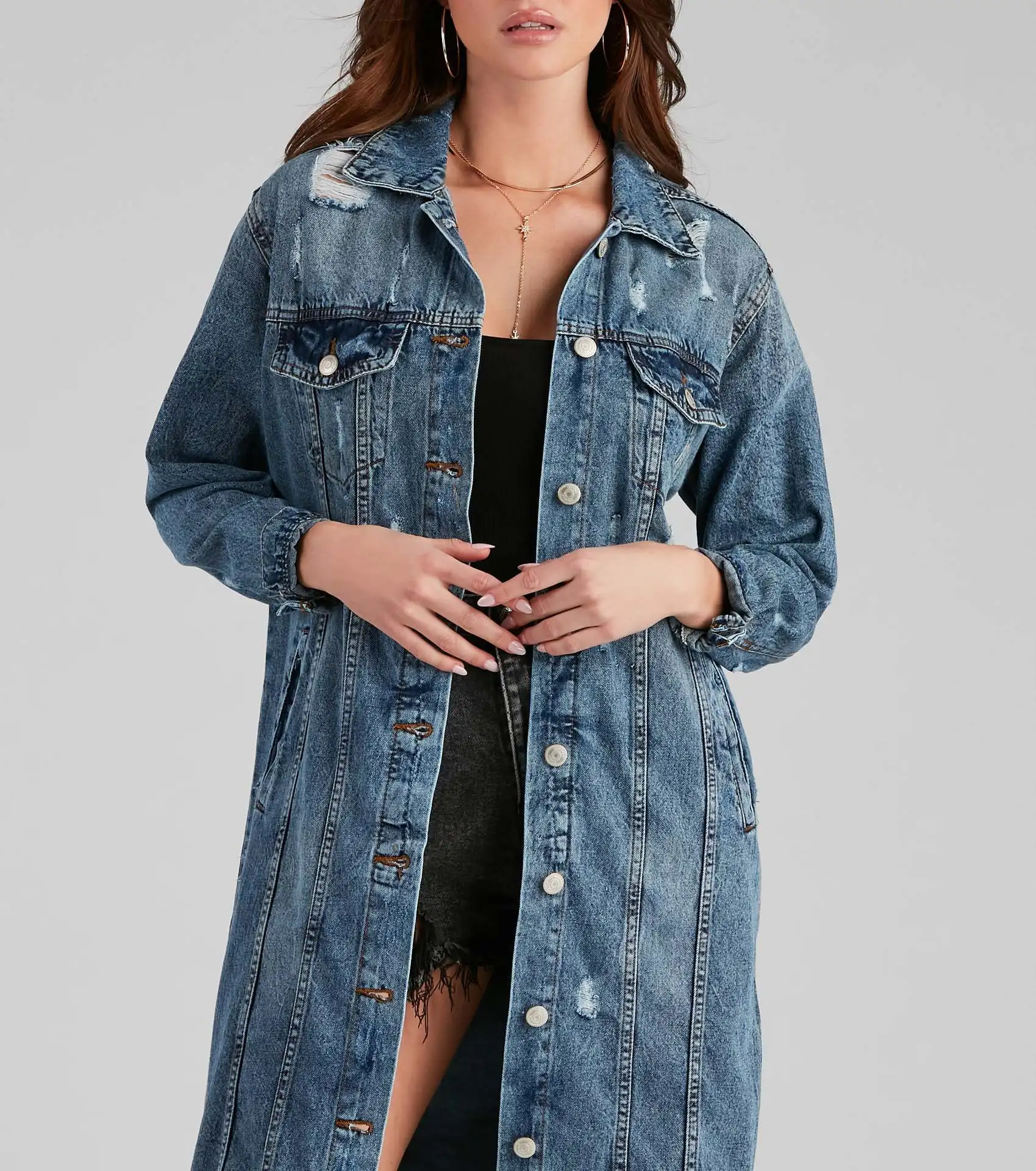• Distressed Women Denim Jacket Tassel Button up New Fashion Coat 2023 Autumn Windbreak Bomber Jacket Ripped Hole Jeans Cardigans