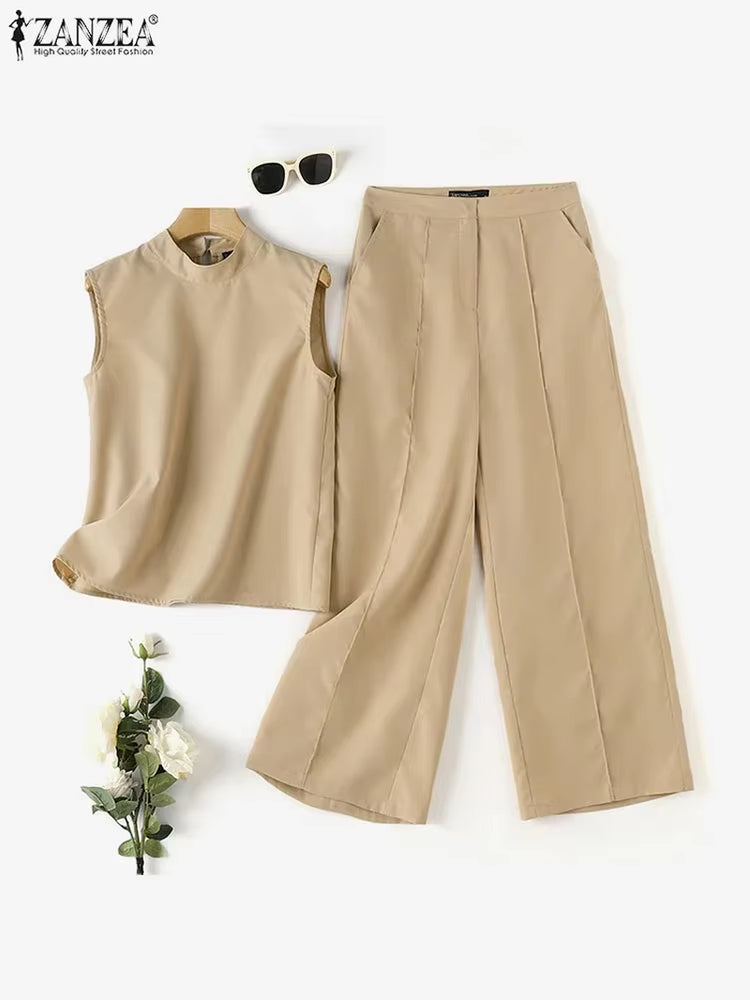 Elegant Women'S Sets  2024 Woman 2-Piece Trouser Suits Fashion 2Pcs Outfits Tank Top and Wide Leg Pant Suits Oversize