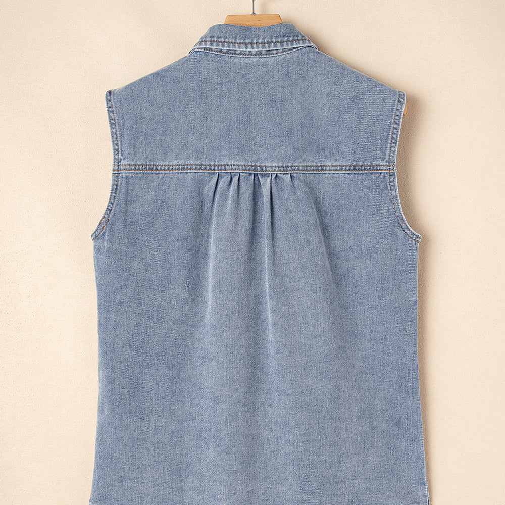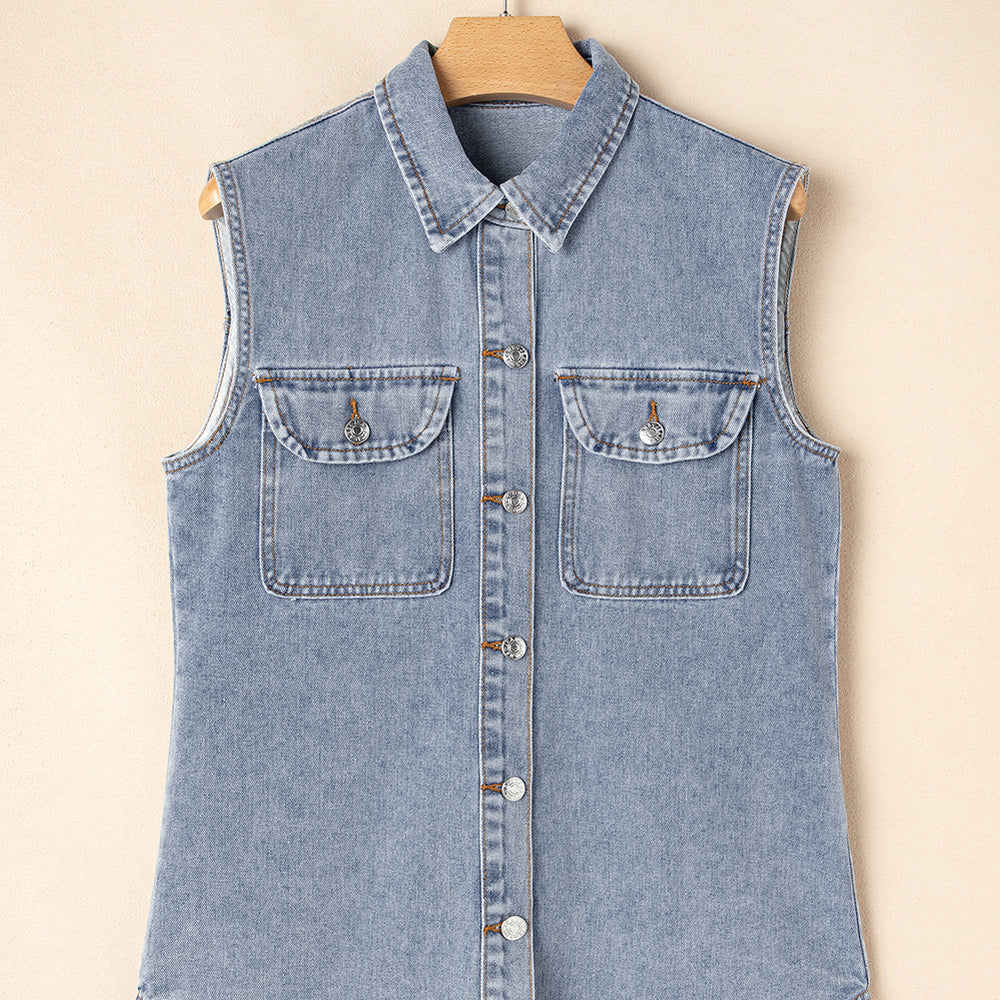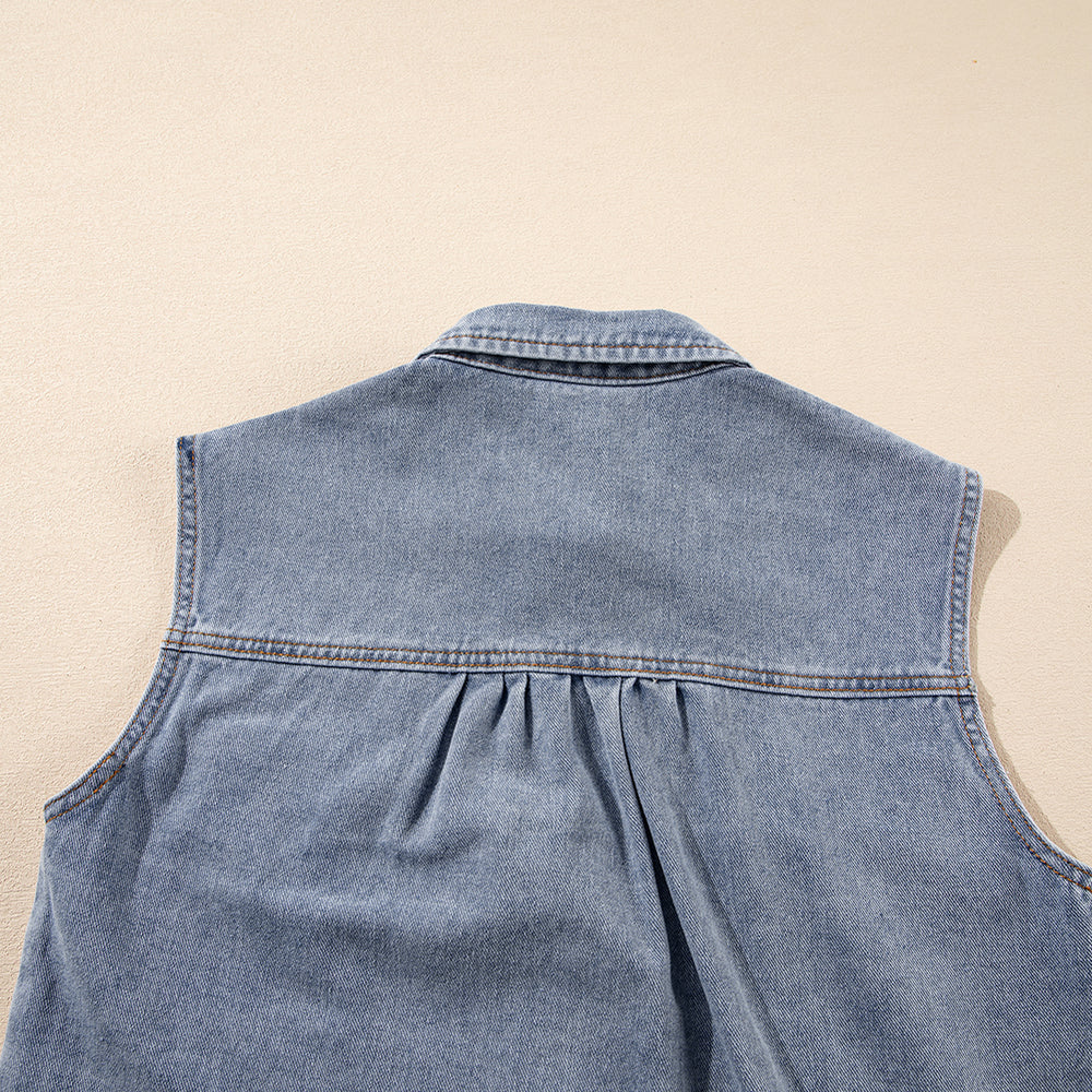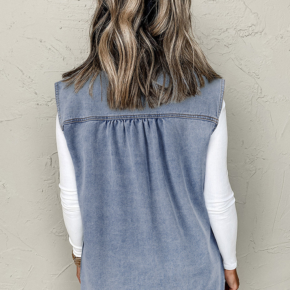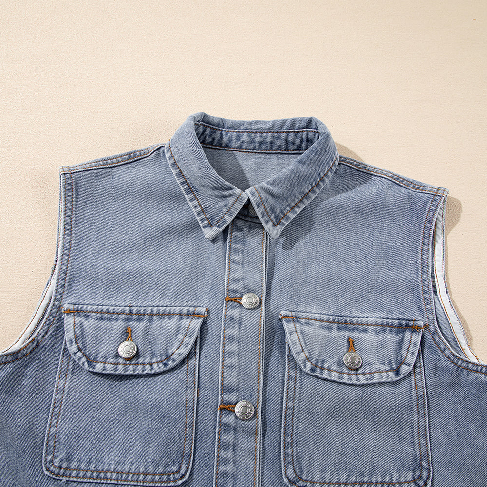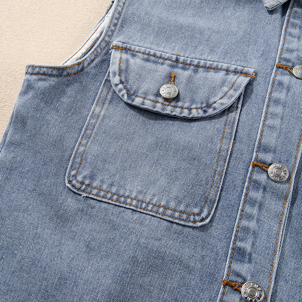 With its light wash tone and unique curved hem, this vest is vintage but chic.