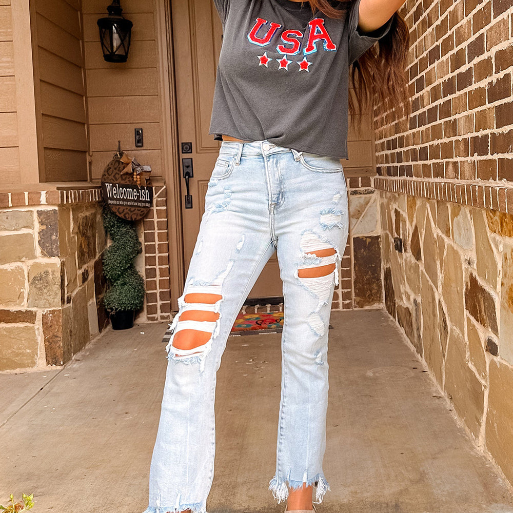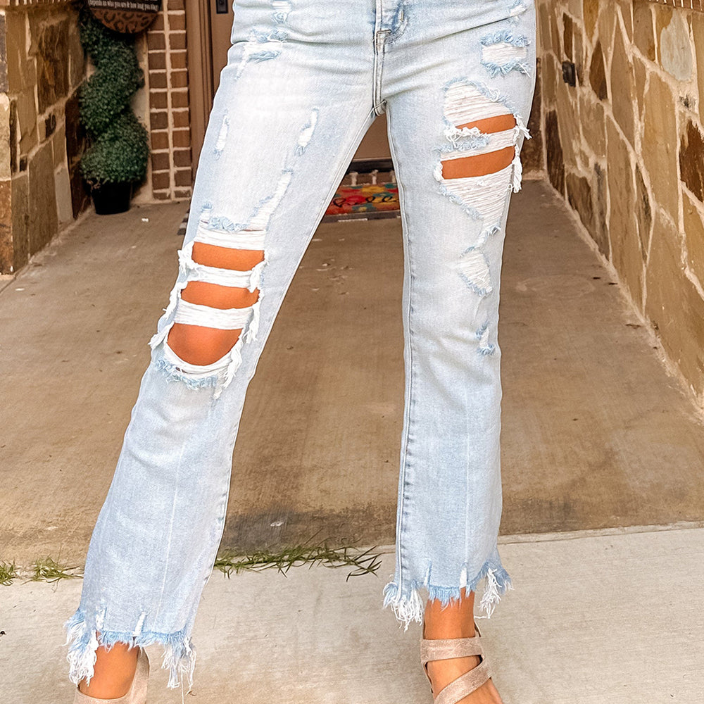 | Details | Button,Pocket,Ripped,Raw Hem | Color | Beau Blue |