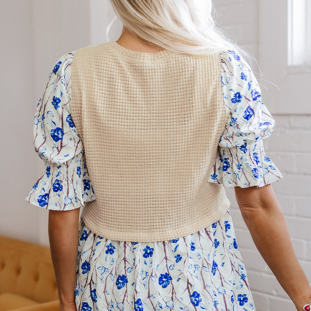 - Flouncy short sleeves add a playful touch.