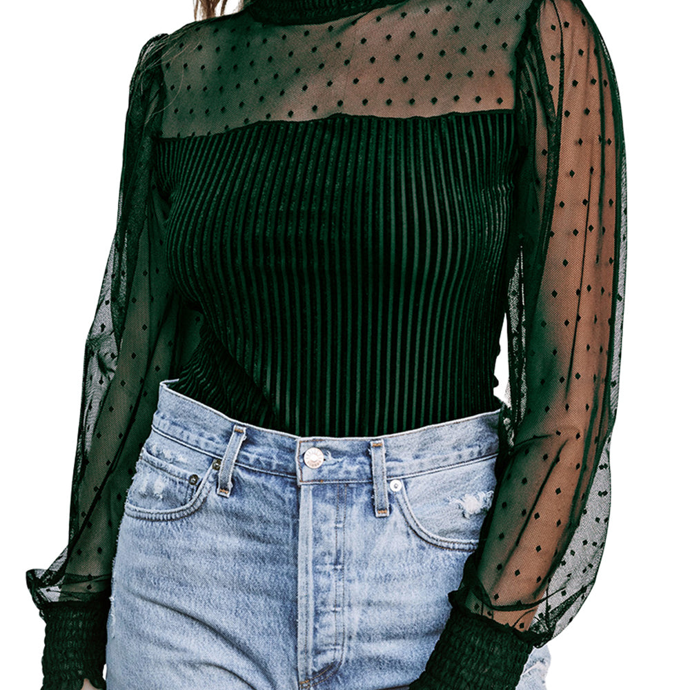 - Sheer and dotty design makes the bodysuit very elegant and trendy
