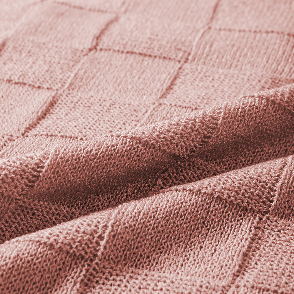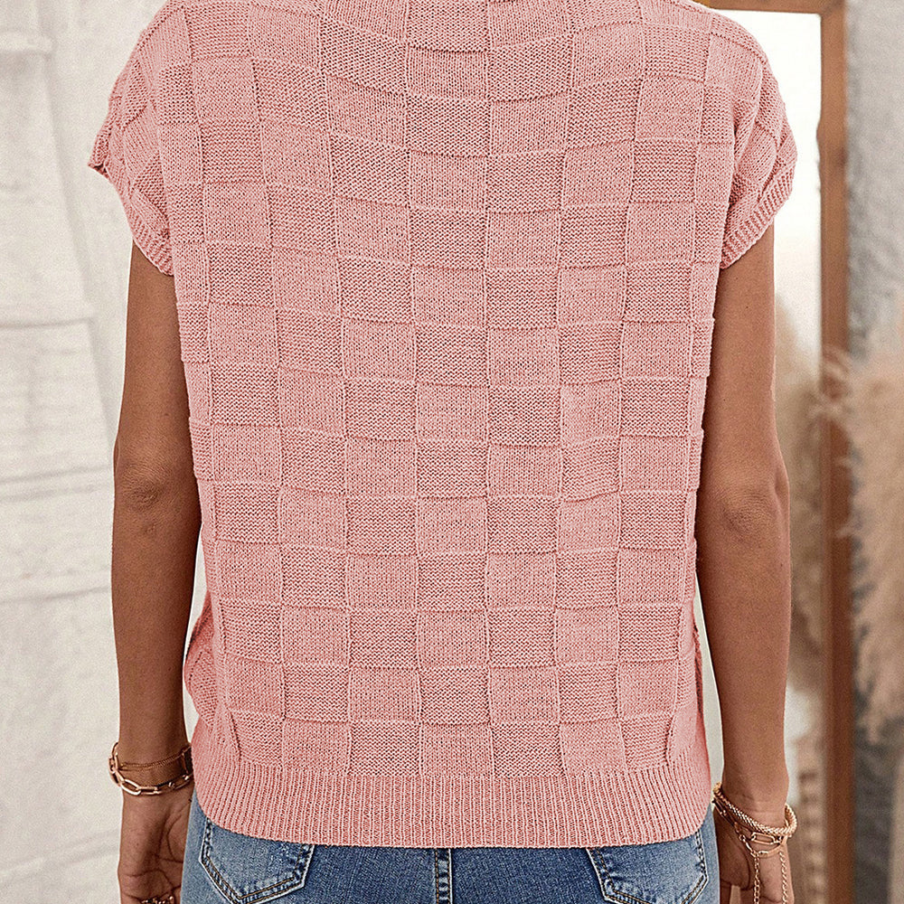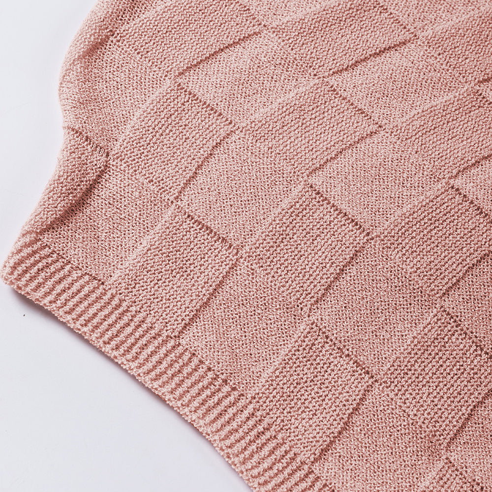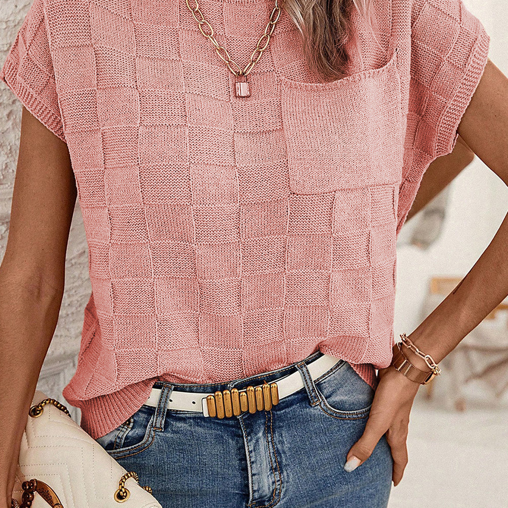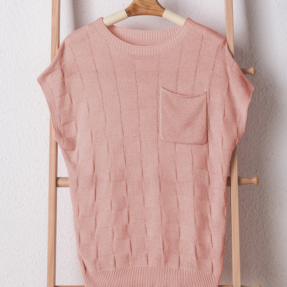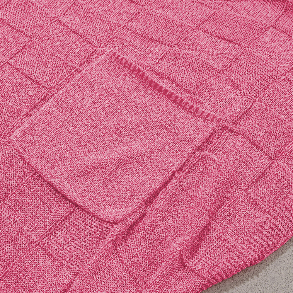 • Bright Pink Lattice Textured Knit Short Sleeve Sweater