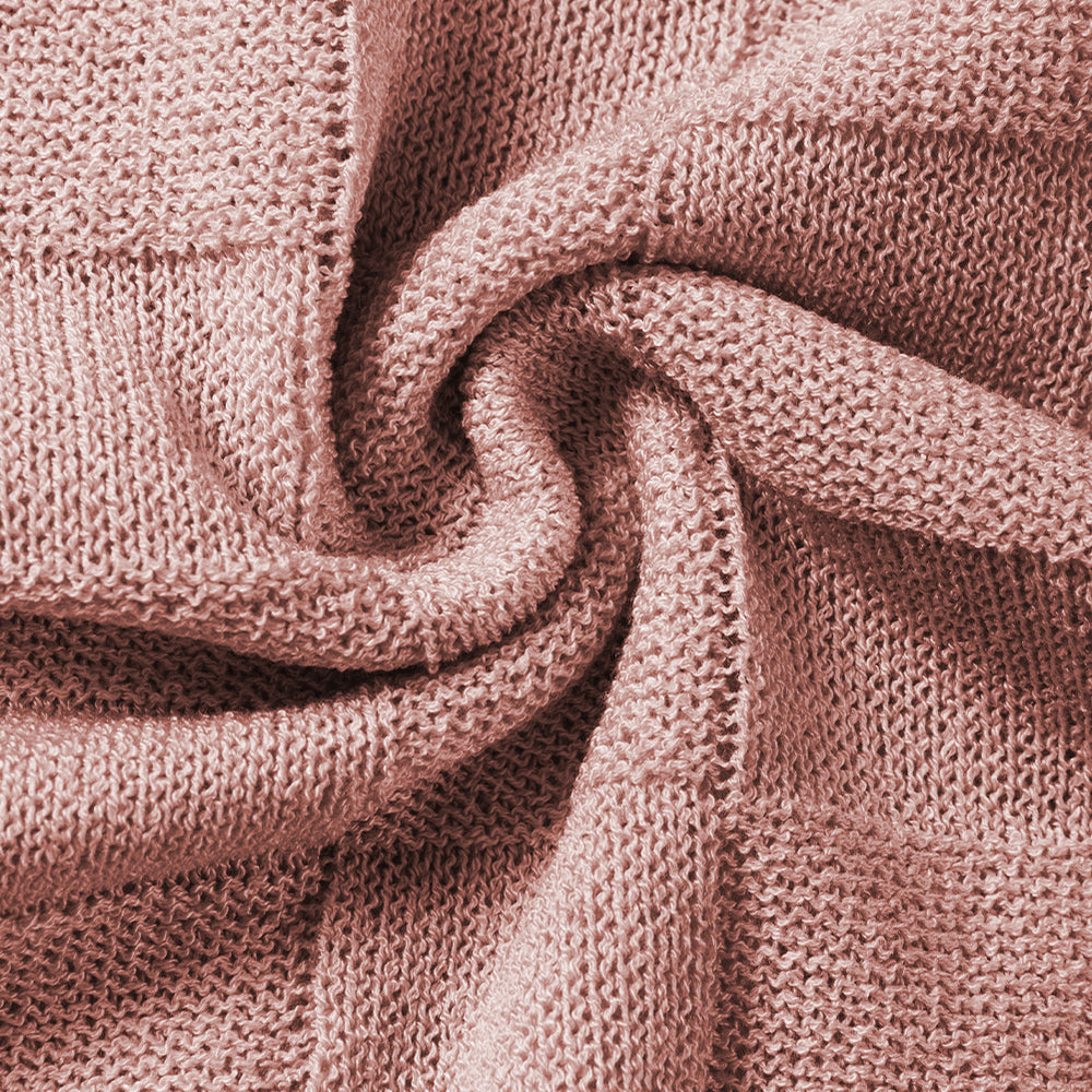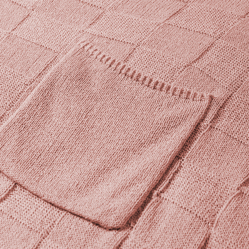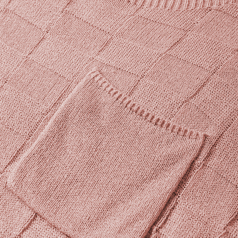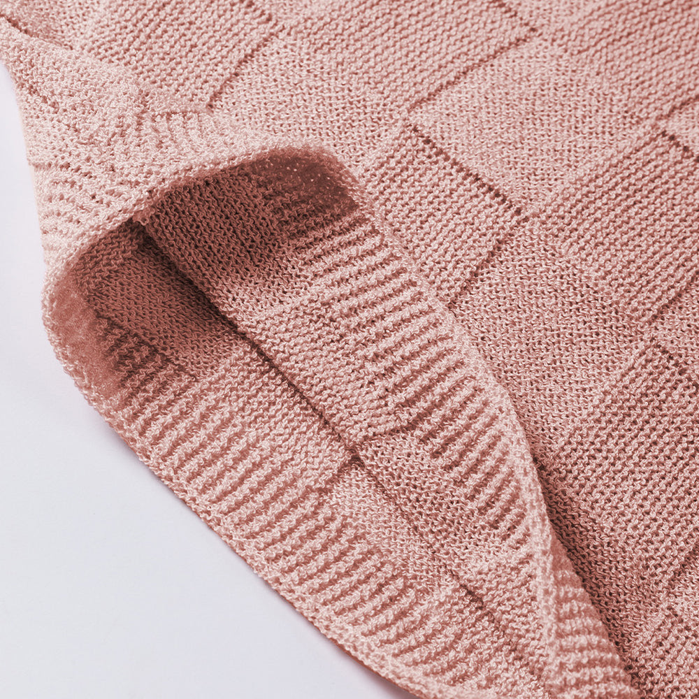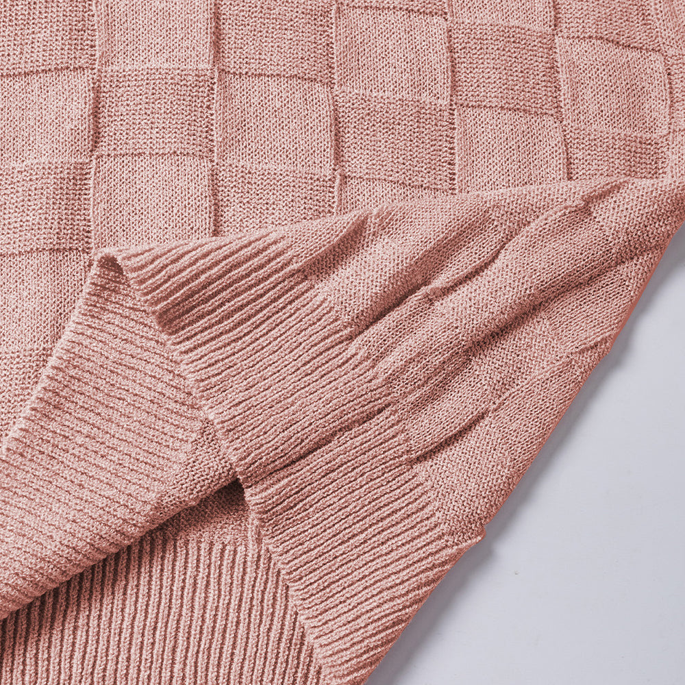 • Bright Pink Lattice Textured Knit Short Sleeve Sweater