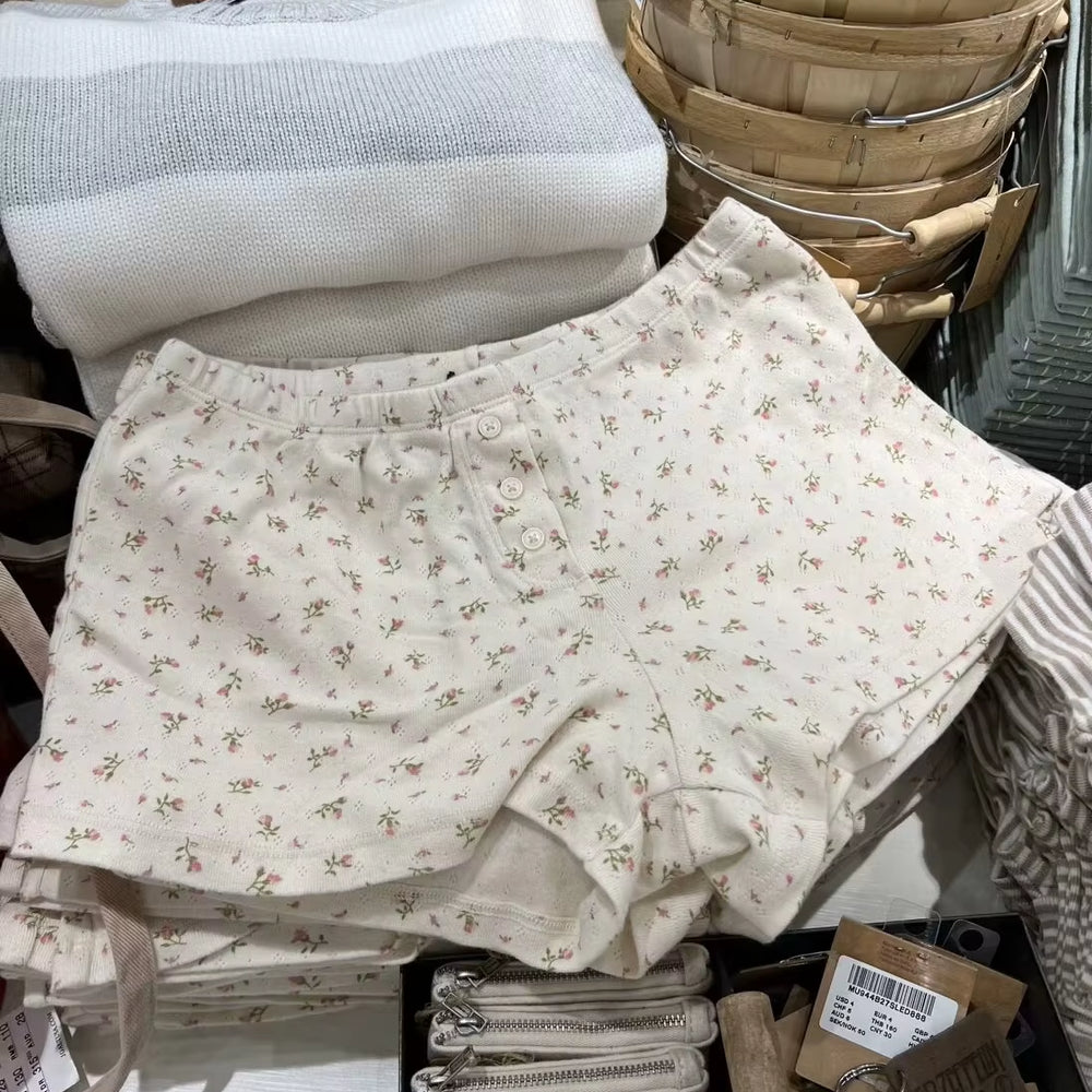 Casual Women Soft Cotton Front Buttons Shorts 2023 Summer Vintage Low Waist Female Chic Bottoms