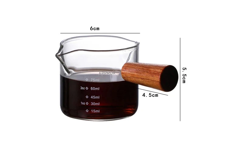 • Double Pour Spout Heat Resistant Glass Measuring Cup Coffee Cup High Borosilicate Glass 75Ml Espresso Transfer Cup Milk Cup