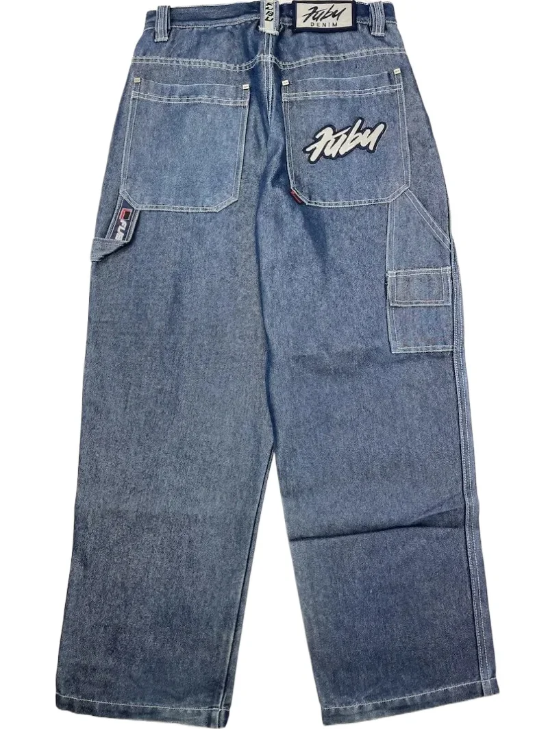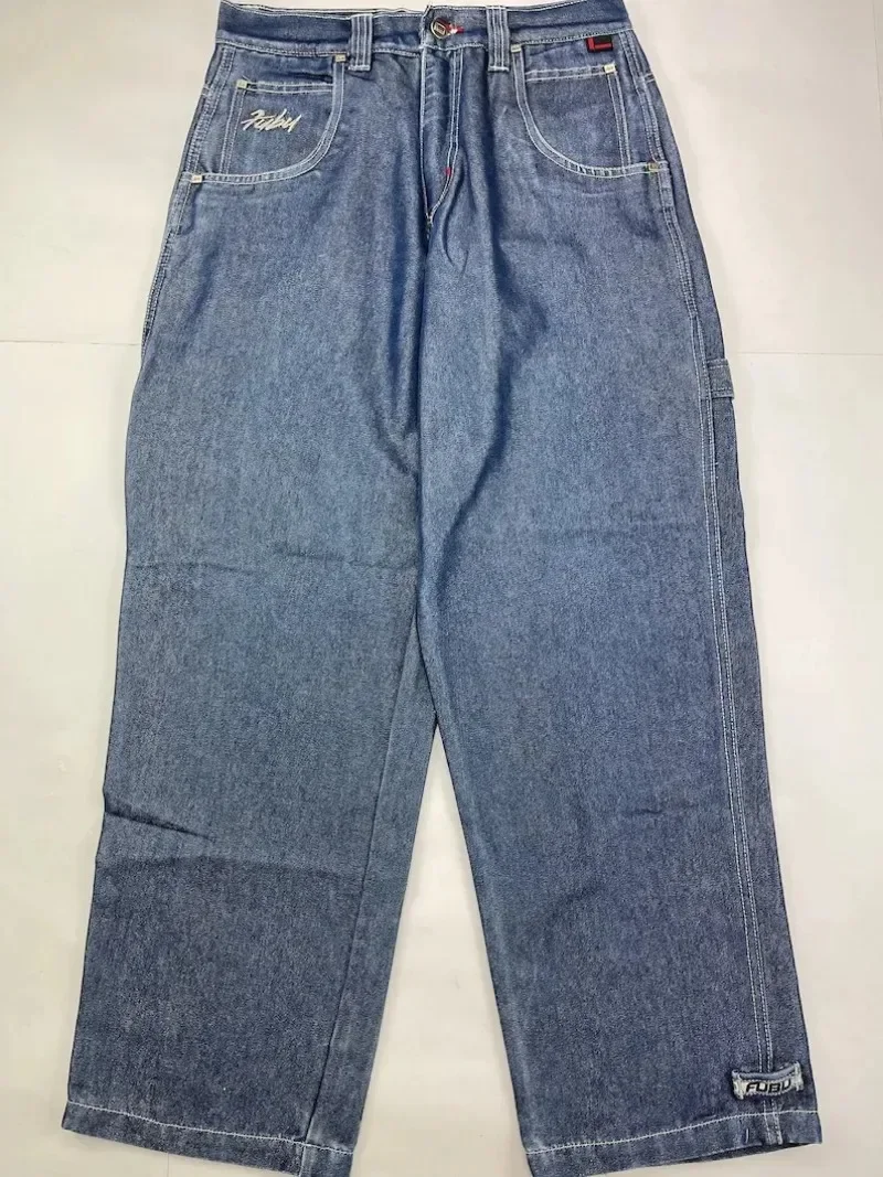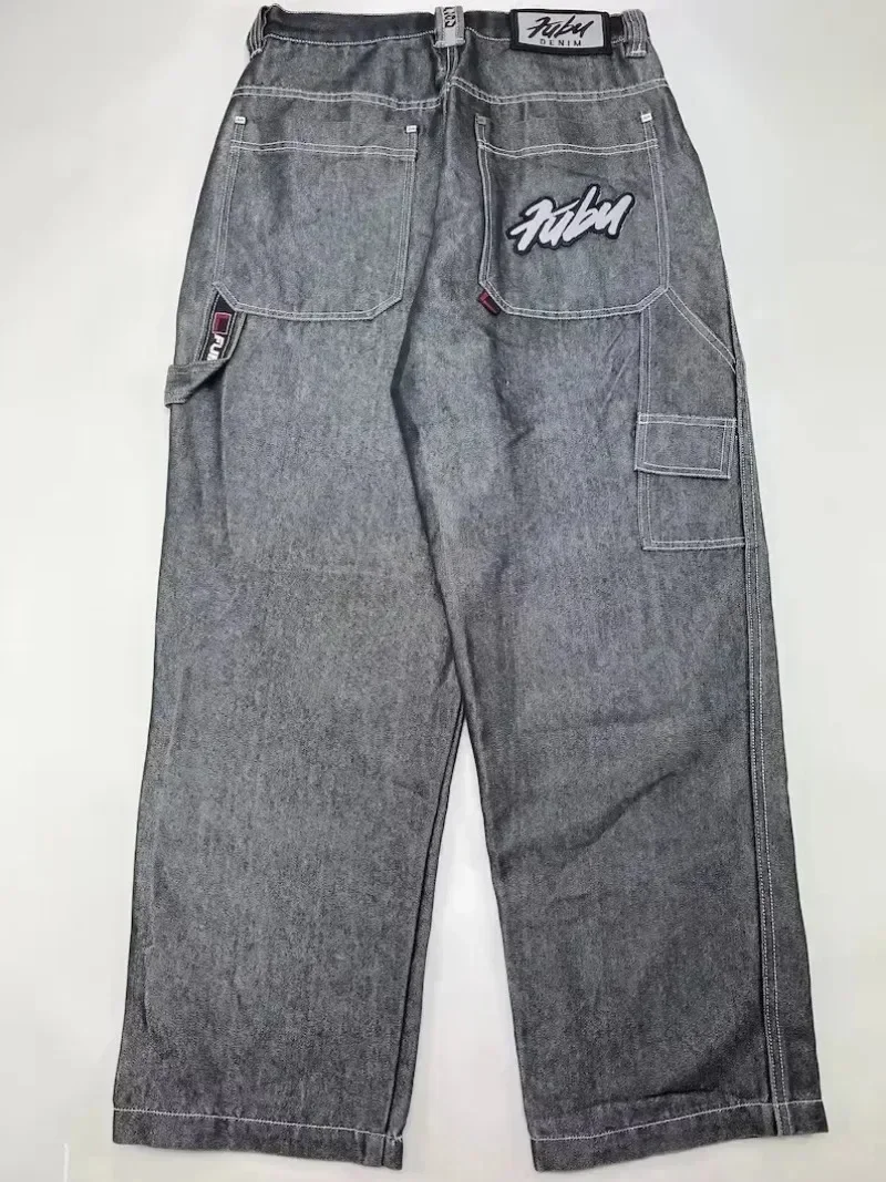 High Street Fashion Trend Letter Embroidery Clearance Spot Special Straight Jeans Men Harajuku Hip Hop Oversized Wide-Leg Pants