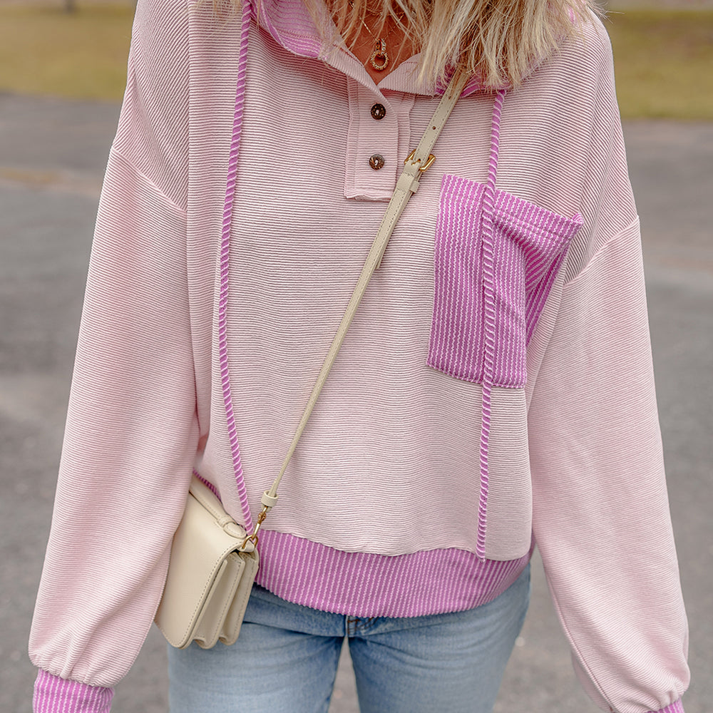 Chic details include buttons front, chest pocket and drop shoulder design.