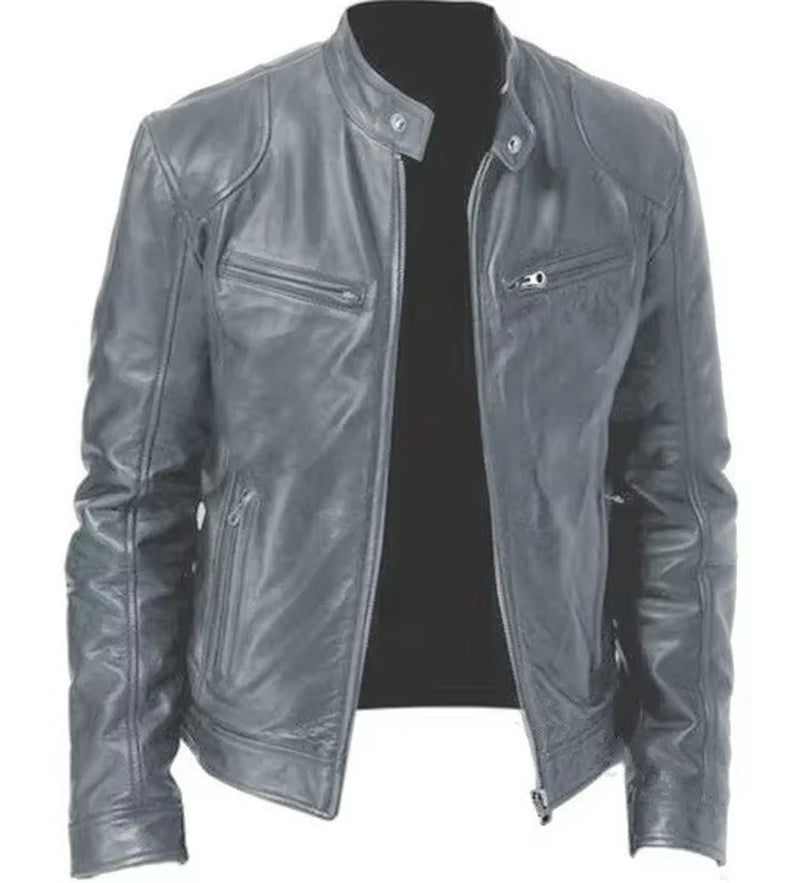 • Mens Leather Jacket Autumn Winter Business Gentleman Warm Zipper Cardigan Pocket PU Leather Jacket Stand Collar Slim Coat