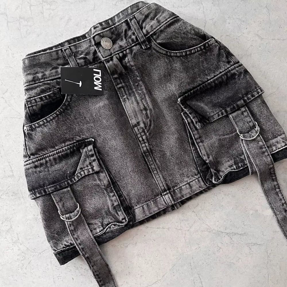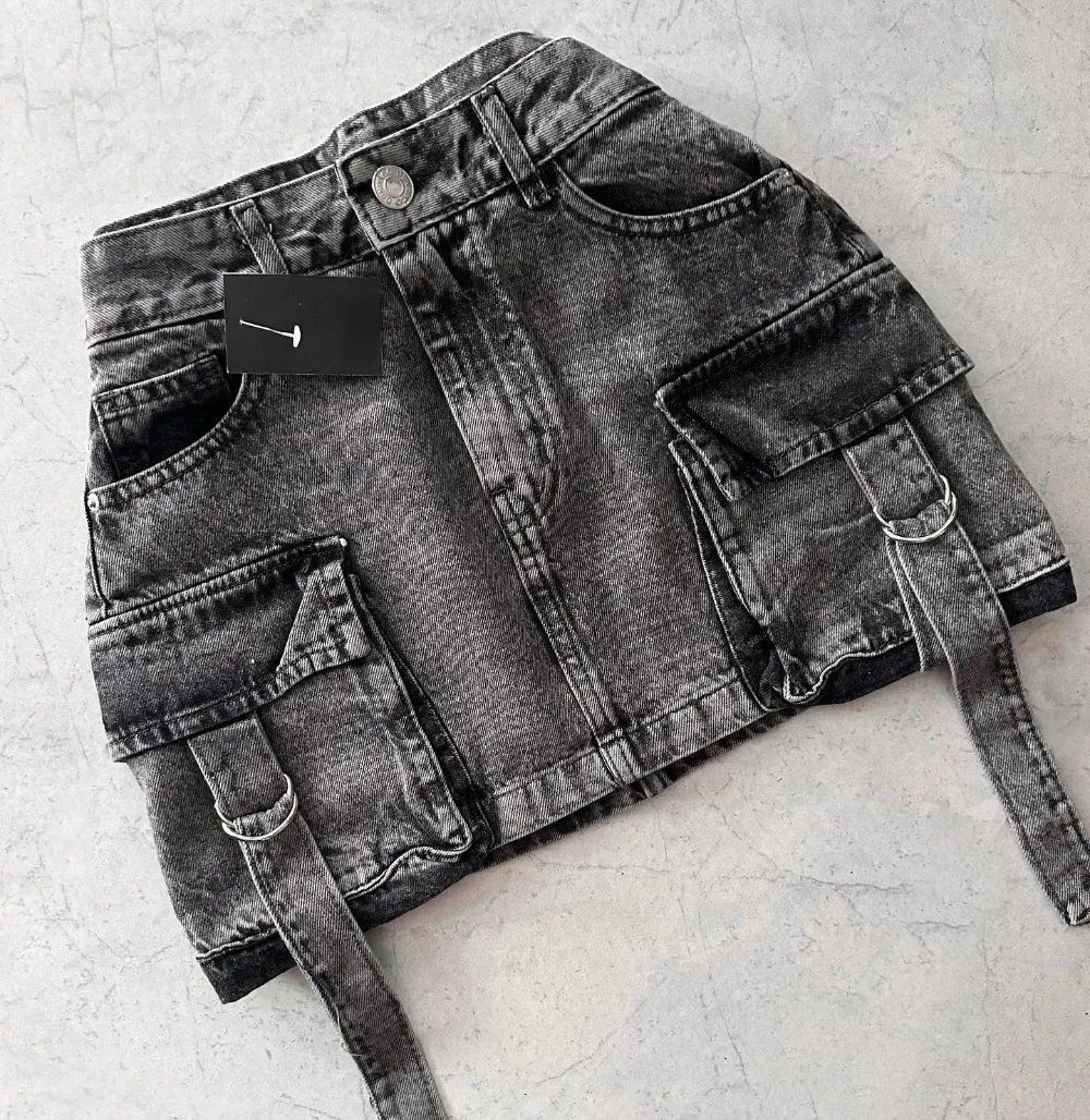 Multiple Pockets Denim Skirt Sets Goth Womens Two Peice Sets Harajuku Y2k New Fashion Straps Casual Versatile Strap Streetwear
