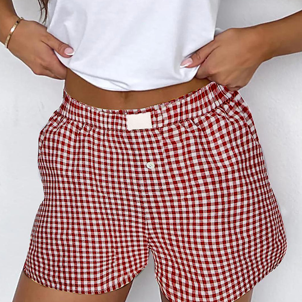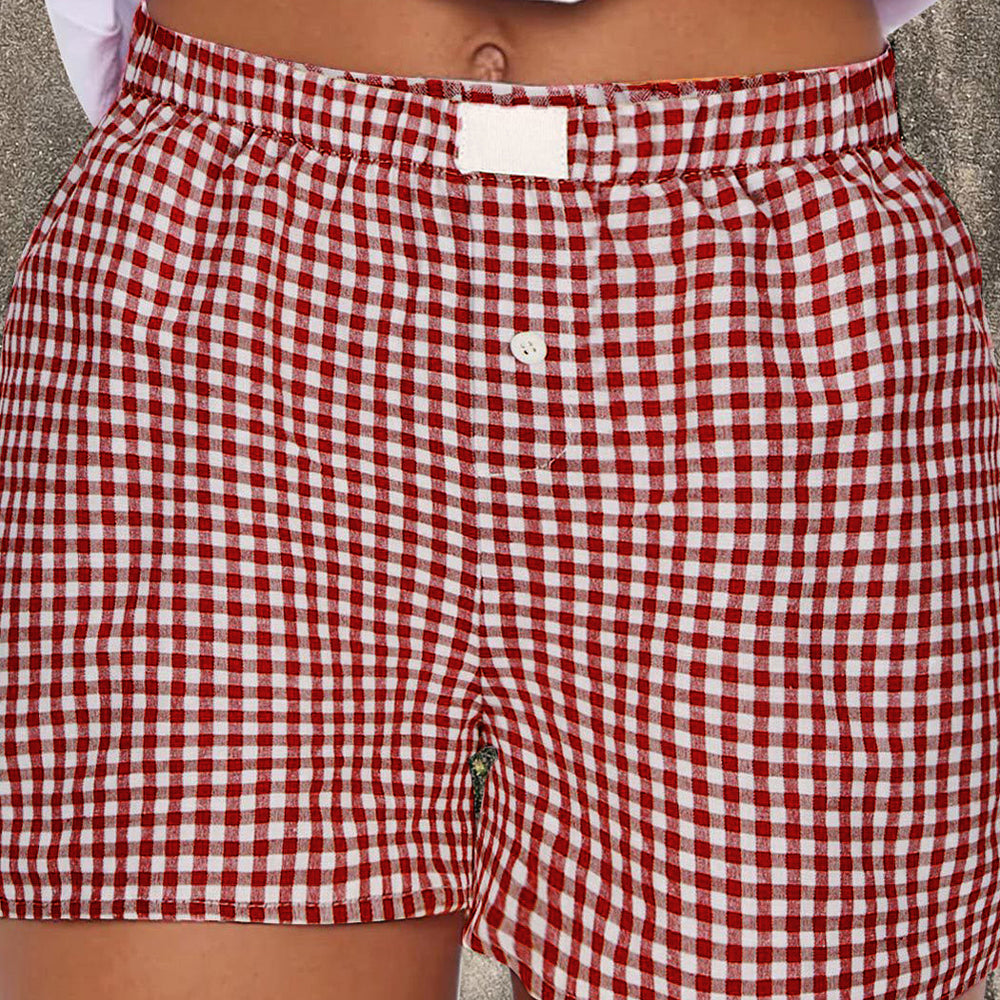 • Red Plaid Gingham Printed High Waist Shorts