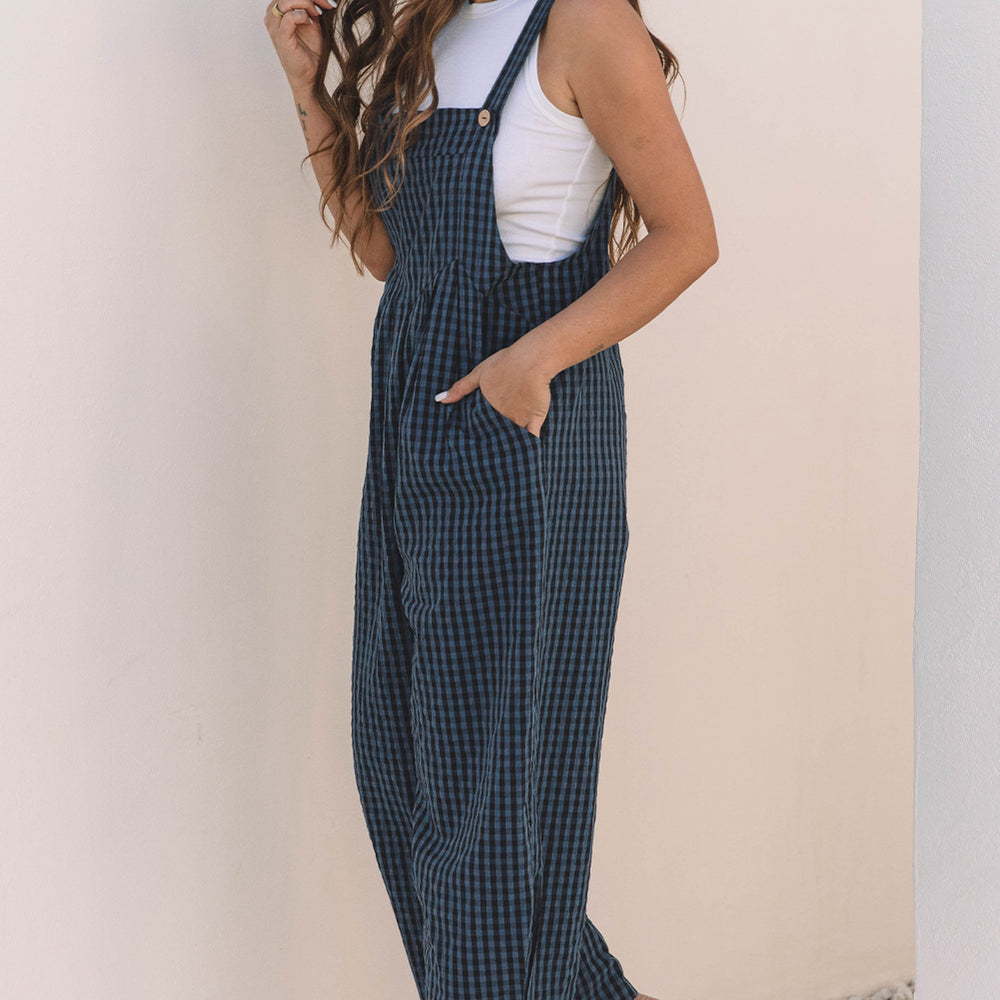 - Make a fashion statement with a timeless plaid print jumpsuit.