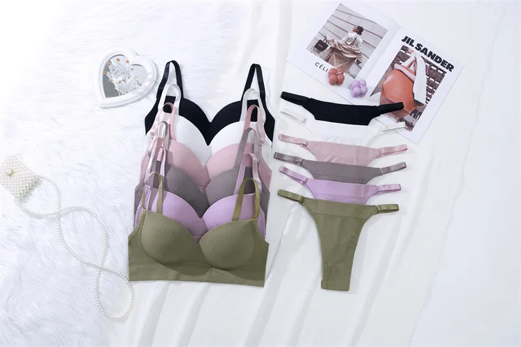 Sexy Women Bra Panties Set G-String Sports Bra Crop Top Seamless Underwear Fitness Bra Top Thongs Female Lingerie Set Intimates