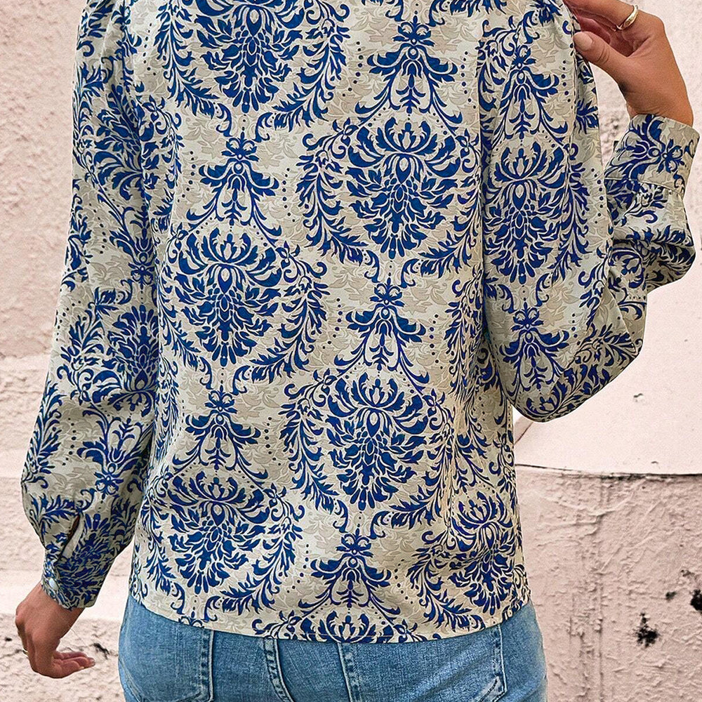 • Sky Blue Bohemian Printed Bishop Sleeve Lace Shirt