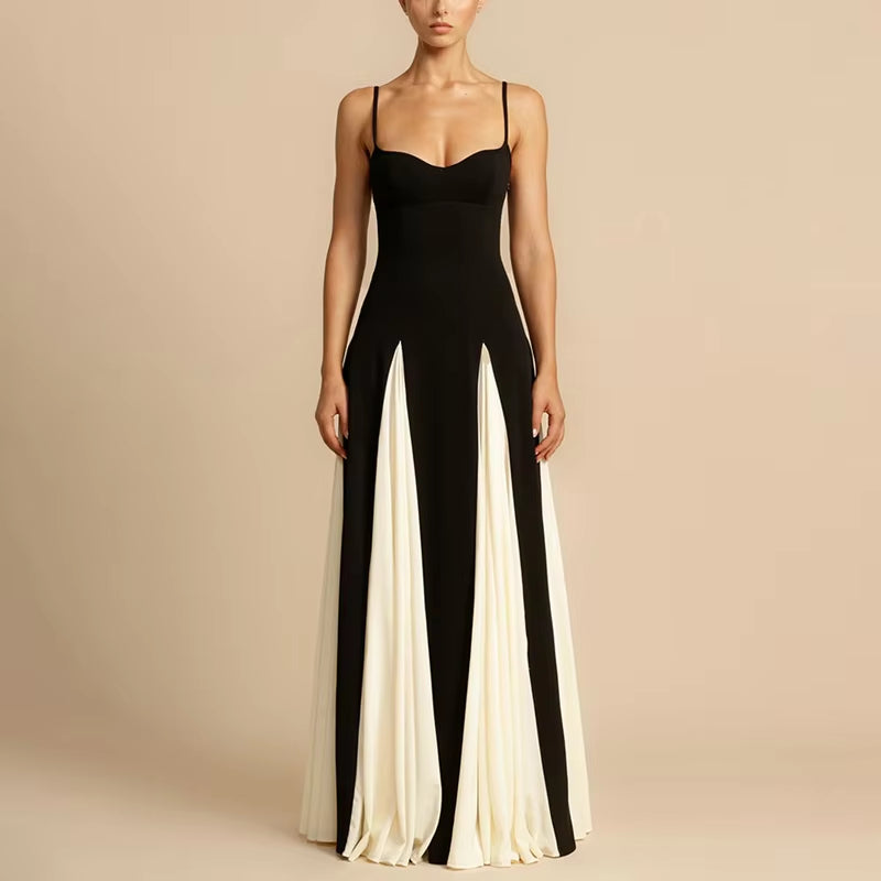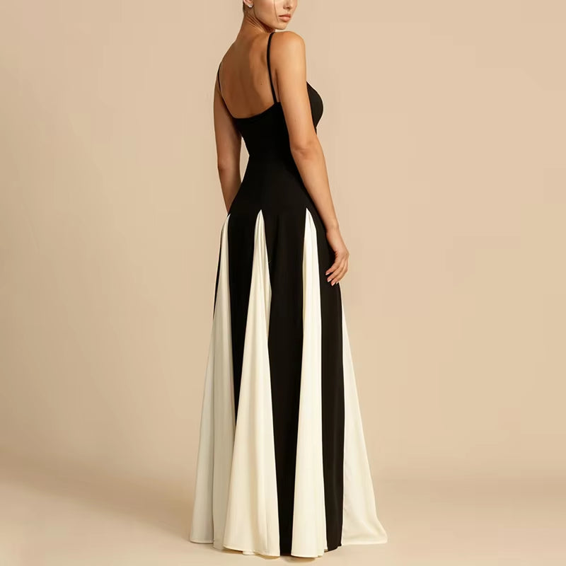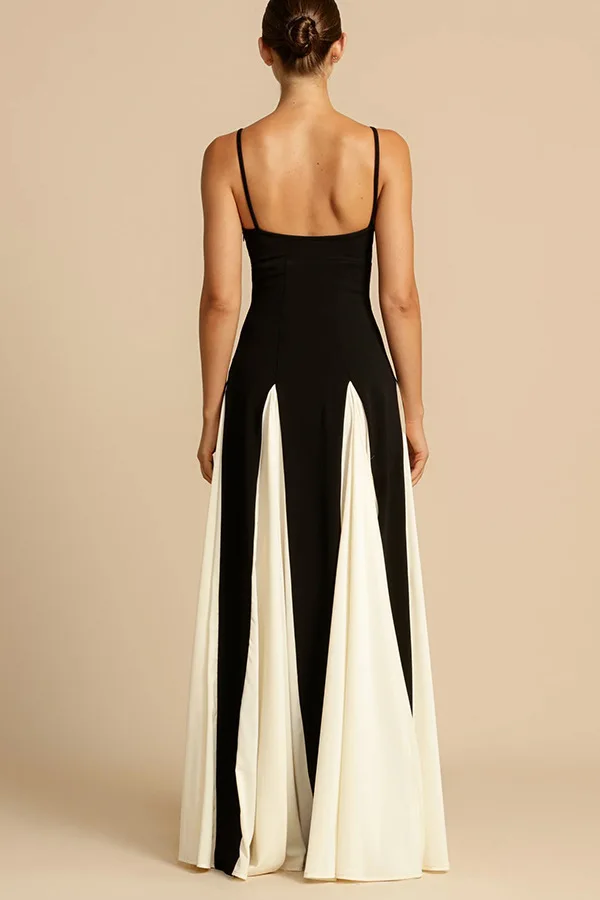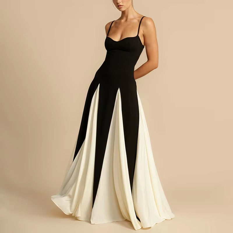 Sling Contrast Color Women'S Dress V Neck Elegant Party Dress Fashion Pullover Patchwork Dress for Women 2024 New