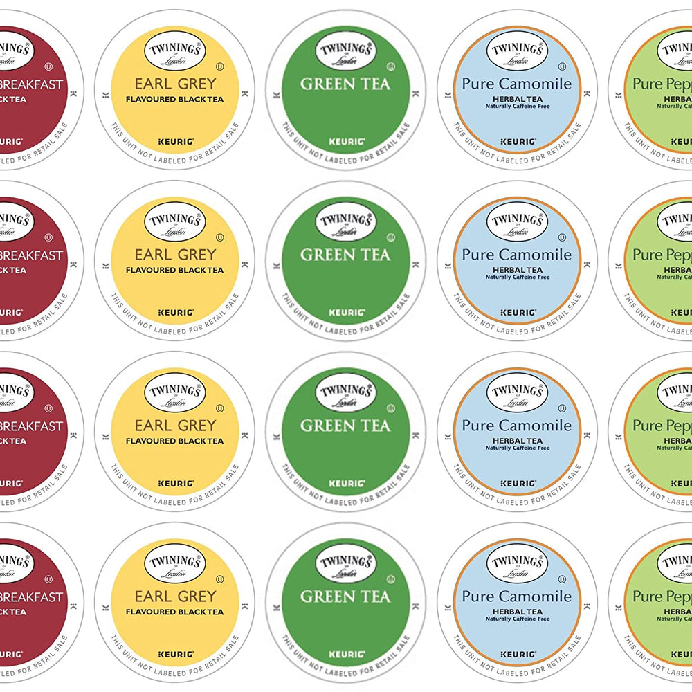 - Includes English Breakfast, Earl Grey, Green Tea, Pure Camomile, Pure Peppermint