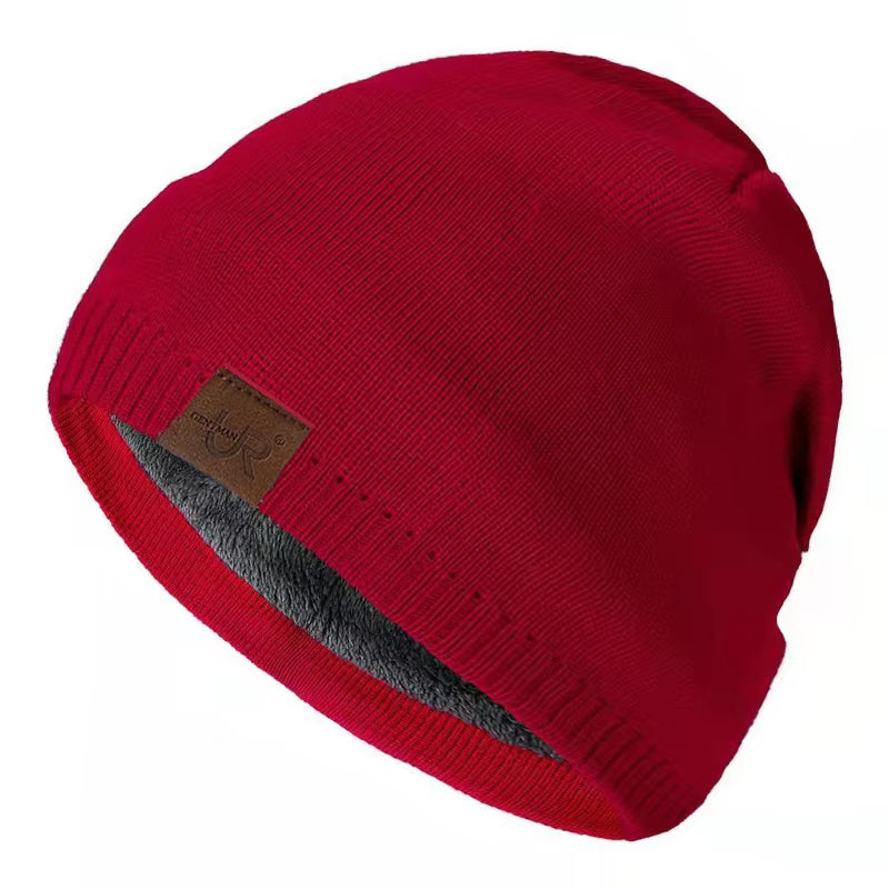 • Unisex URGENTMAN Labal Winter Hats Solid Color Knitted Hats for Men and Women Beanie Cap Outdoor Add Fur Lining Warm Sports Hats